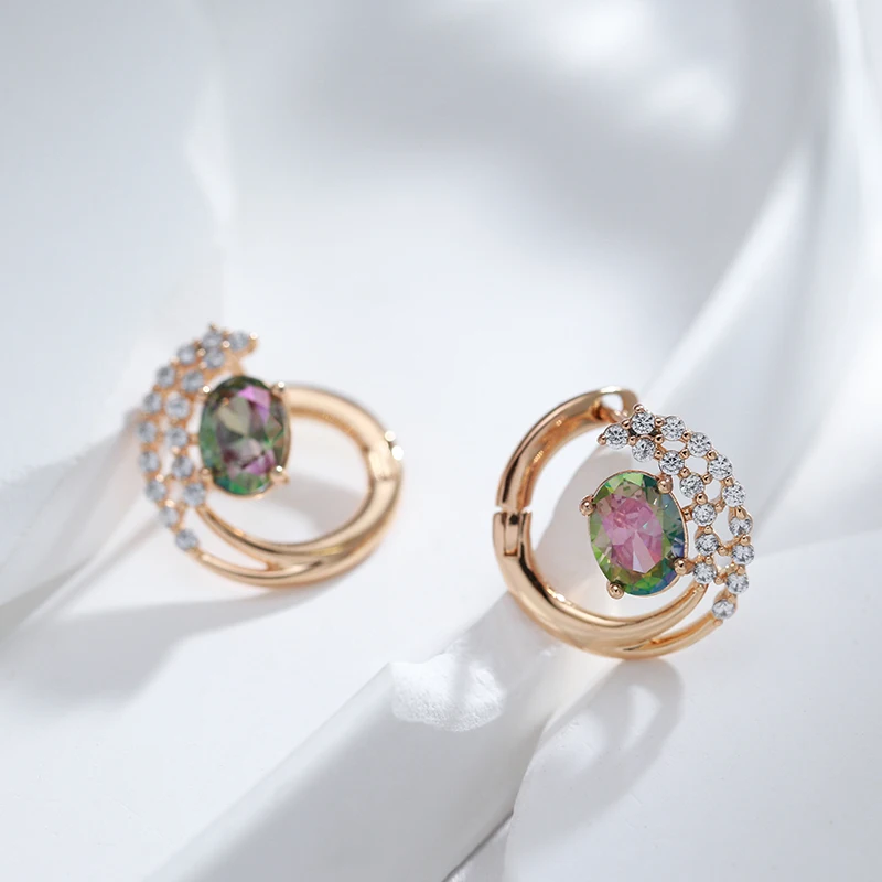 Kinel New 585 Rose Gold Color Drop Earrings for Women Unusual Colourful Natural Zircon Flower Earrings Fashion Vintage Jewelry