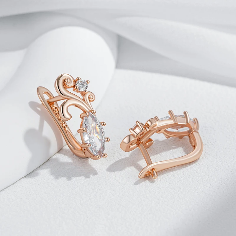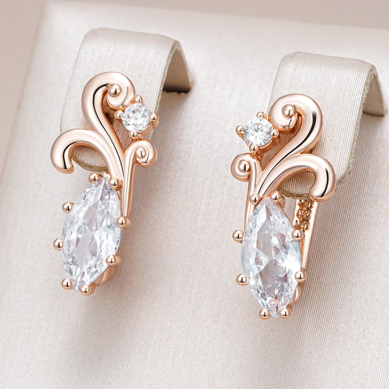 Kinel Hot Shiny Rhombus Natural Zircon English Earrings For Women 585 Rose Gold Color Crystal Flower Daily Vintage Jewelry
