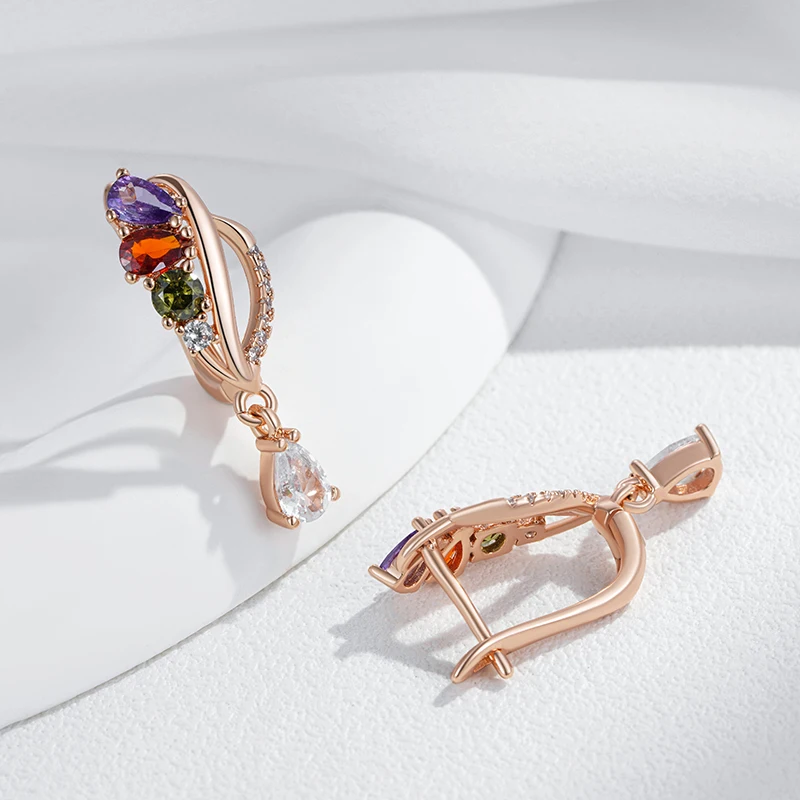 Kinel Hot Shiny Colorful Natural Zircon Drop Earrings for Women Fashion 585 Rose Gold Color Accessories Daily Vintage Jewelry