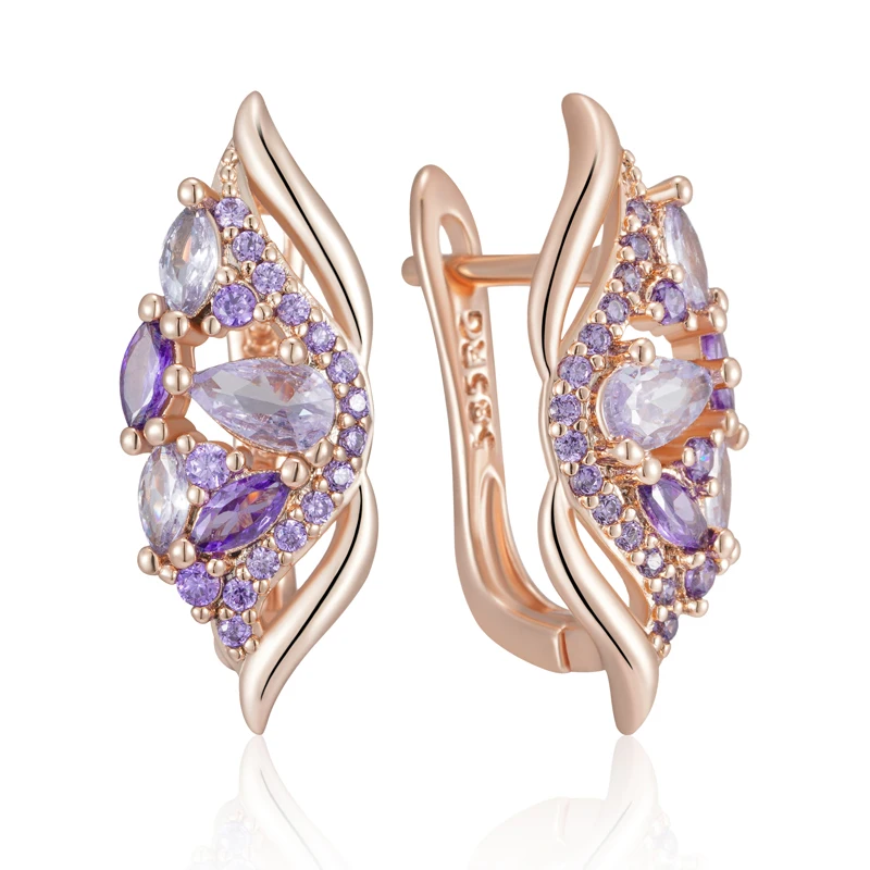 Material:Copper + Natural Cubic Zircon + 585 Rose Gold Plated + Micro Wax Inlay(Материал: медь + натуральный кубический циркон + покрытие из розового золота 585 пробы + микро-воск)