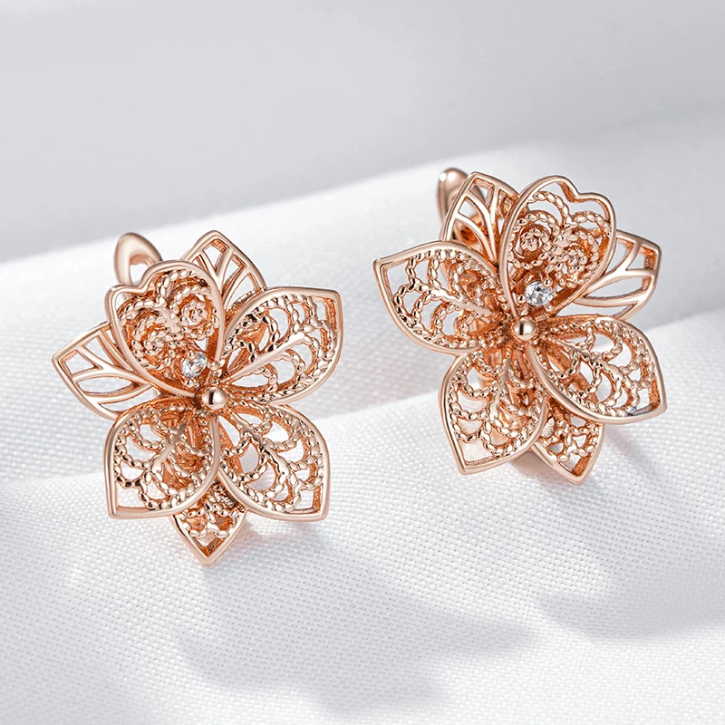 Kienl Hot 585 Rose Gold Color Flower Dangle Earrings for Women Shiny Natural Zircon Accessories Vintage Daily Fine Jewelry