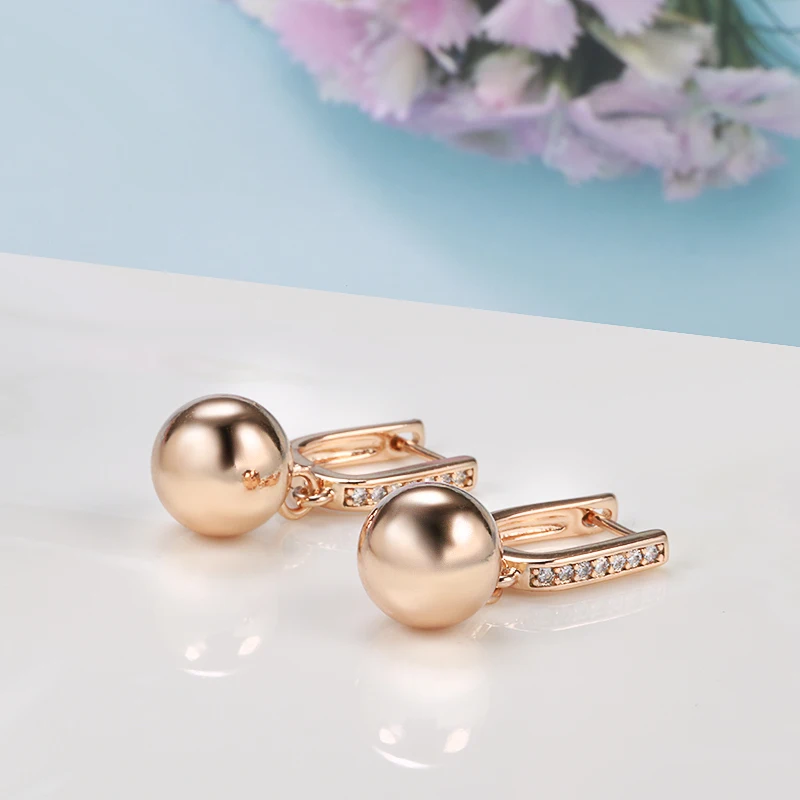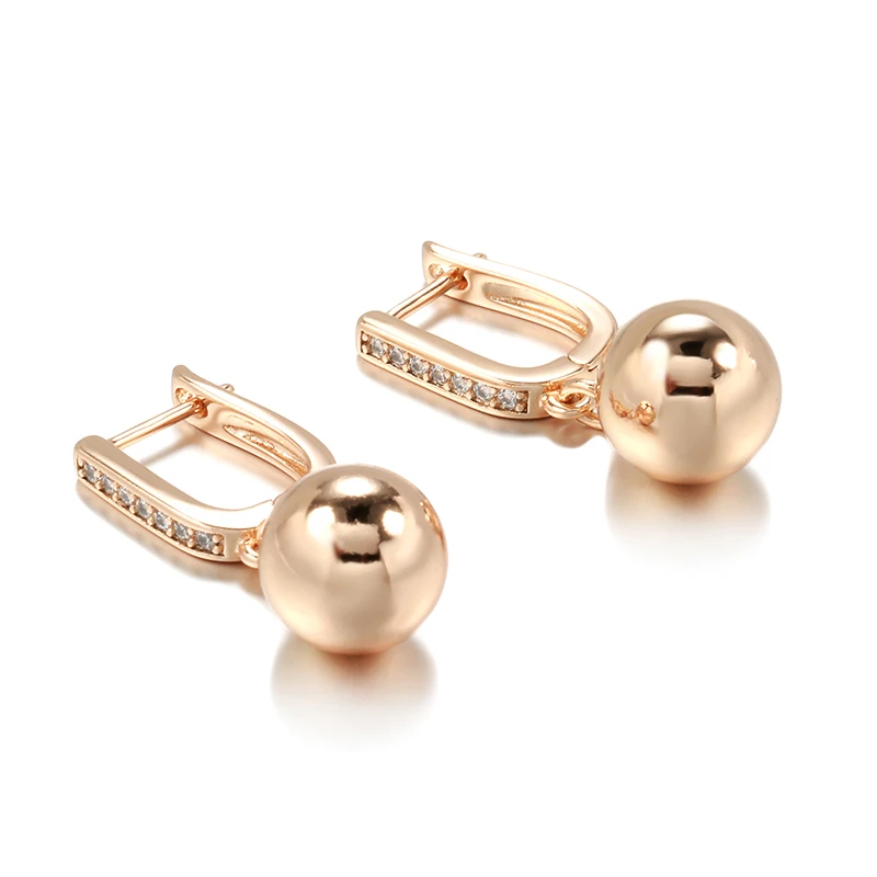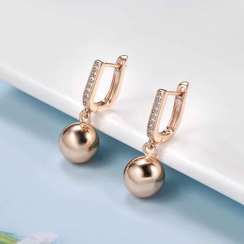 Kinel New 585 Rose Gold Long Earrings for Women Unique Simple Glossy Ball Natural Zircon Dangle Earrings Fine Wedding Jewelry