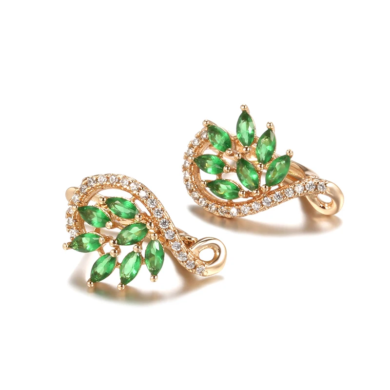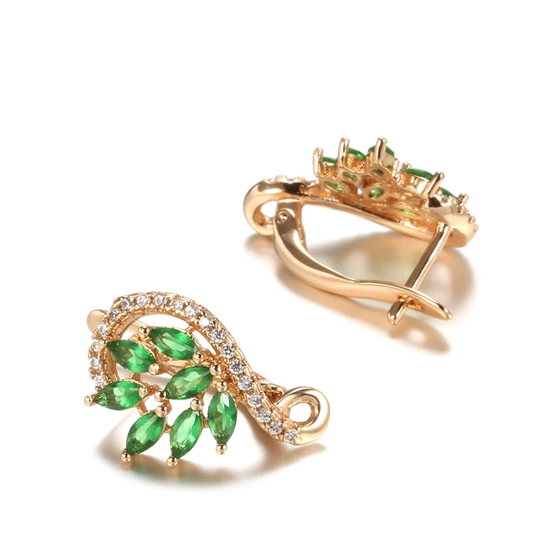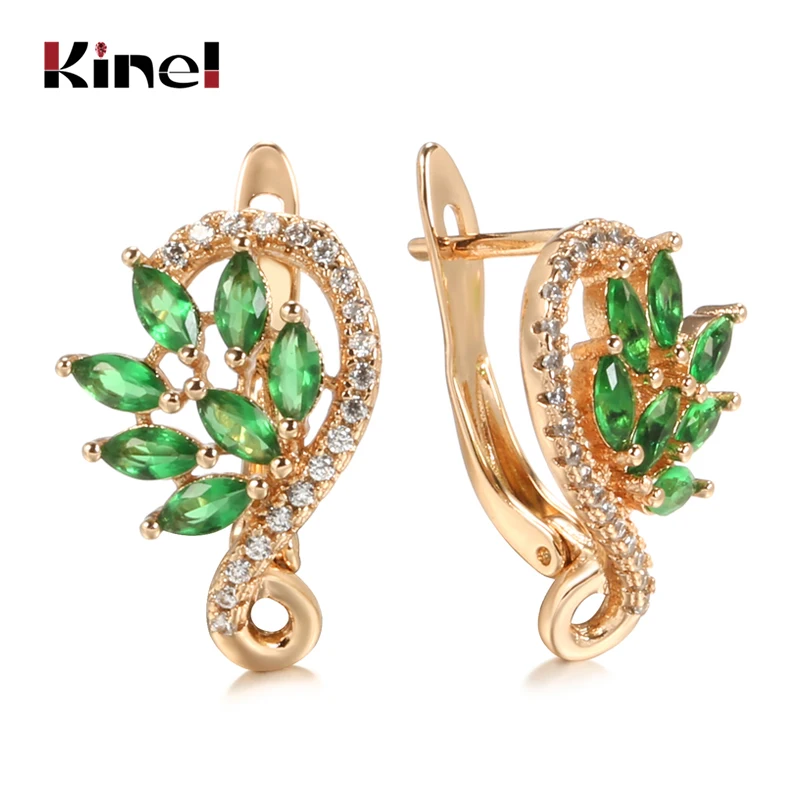 Kinel Hot 585 Rose Gold Color Earrings Fashion Jewelry 2024 for Women Shiny Green Natural Zircon Accessories Daily Fine Jewelry