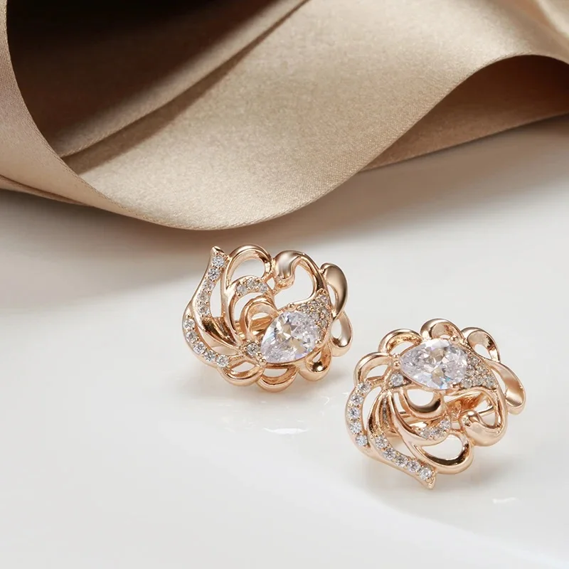 Material:Copper + Natural Cubic Zircon + 585 Rose Gold Plated + Micro Wax Inlay(Материал: медь + натуральный кубический циркон + покрытие из розового золота 585 пробы + микро-воск)