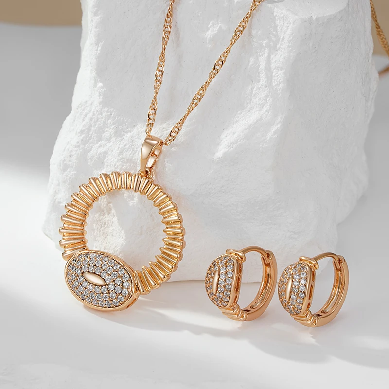Material:Copper + Natural Cubic Zircon + 585 Rose Gold Plated + Micro Wax Inlay(Материал: медь + натуральный кубический циркон + покрытие из розового золота 585 пробы + микро-воск)