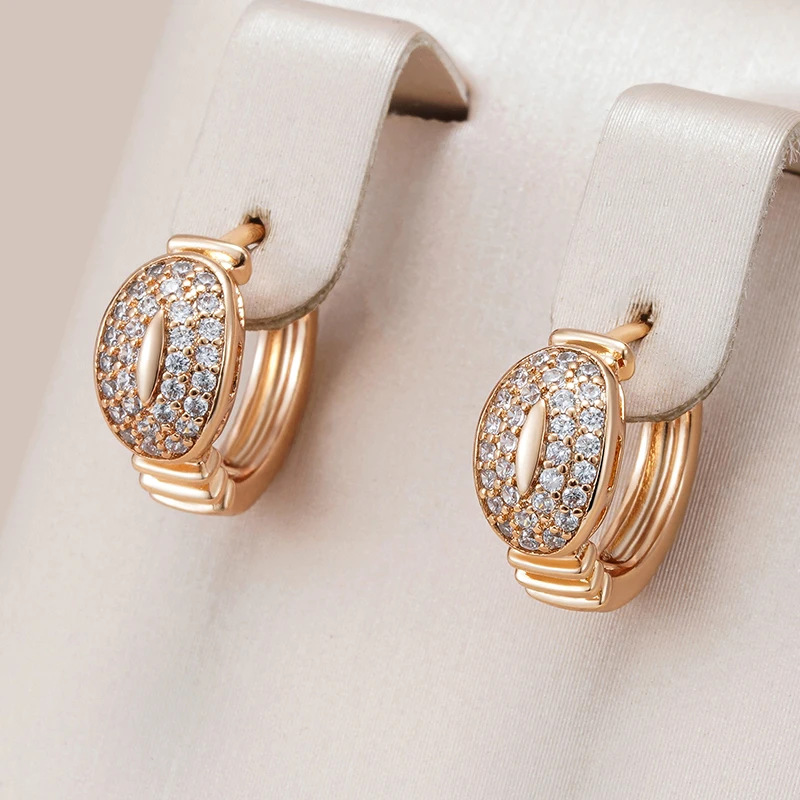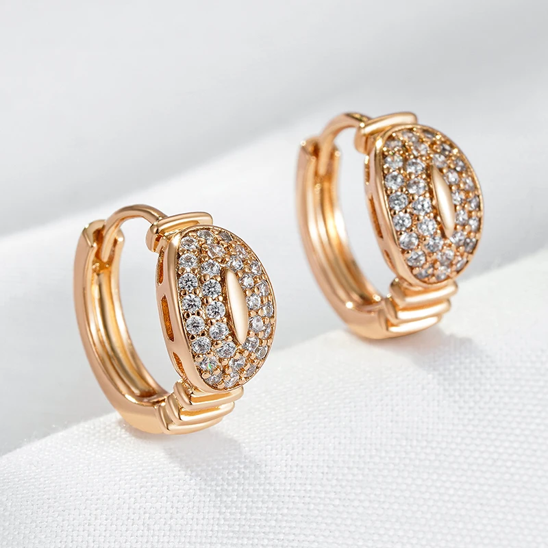 Kinel New Fashion Shiny Natural Zircon Hoop Earrings for Women Fine 585 Rose Gold Color Wedding Party Fine Jewelry Girls Gift