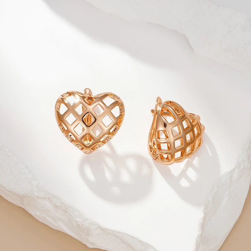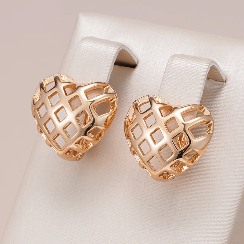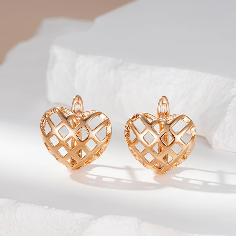 Kinel Hot Fashion Glossy Dangle Earrings 585 Rose Gold Color Simple Cutout Heart-Shaped High Quality Daily Fine Jewelry 2023 New