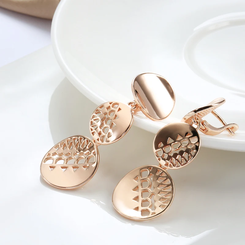 Kinel Unusual 585 Rose Gold Long Dangle Earrings for Women High Quality Daily Fine Jewelry Fashion Ethnic Bride Wedding Earrings