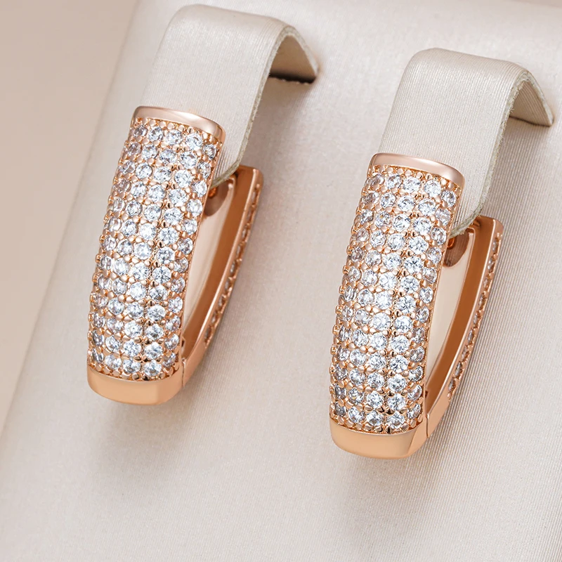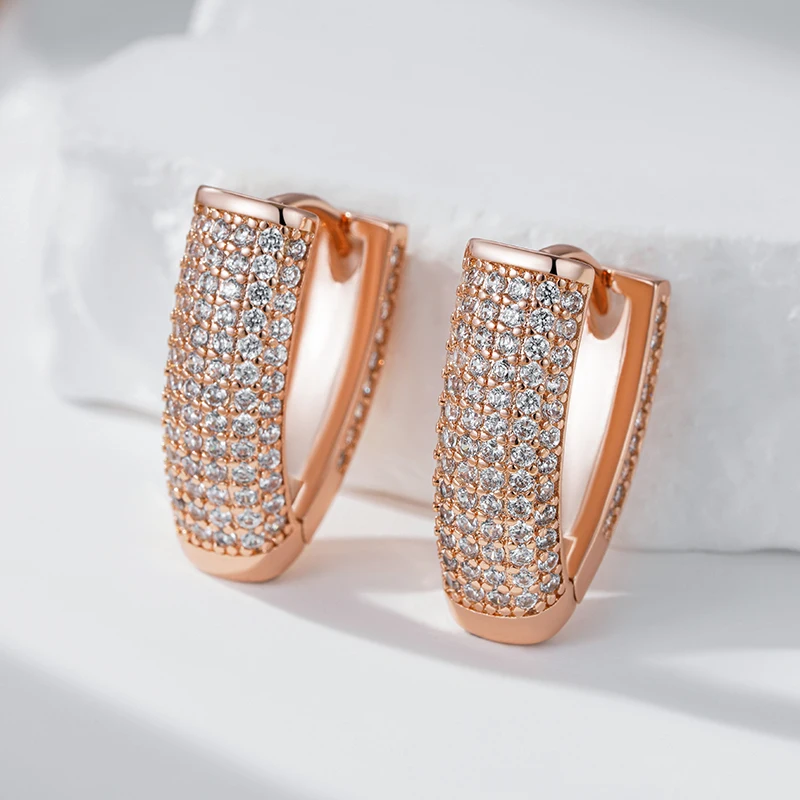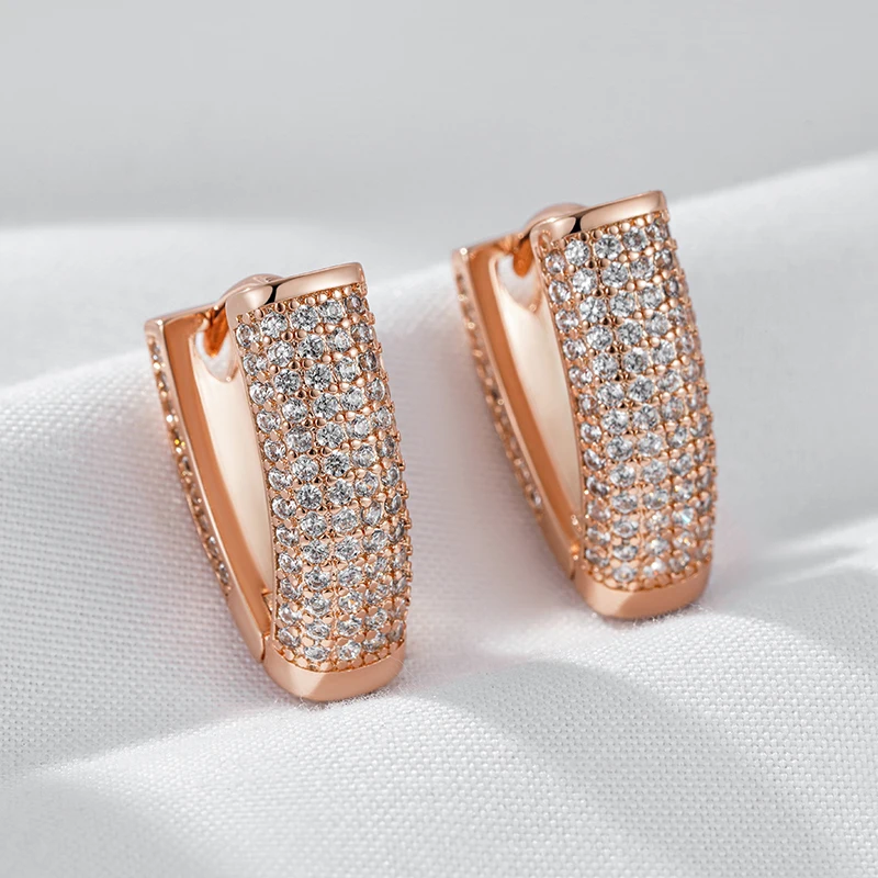 Kinel Trendy 585 Rose Gold Color V Shape Hoop Earrings For Women Luxury Full Natural Zircon Accessories Vintage Bride Jewelry