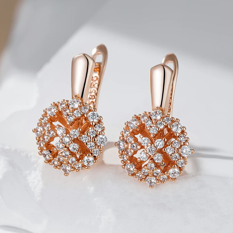 Kienl Hot Unique Crystal Flower Drop Earring for Women 585 Rose Gold Color With Shiny Natural Zircon Daily Vintage Jewelry Gift