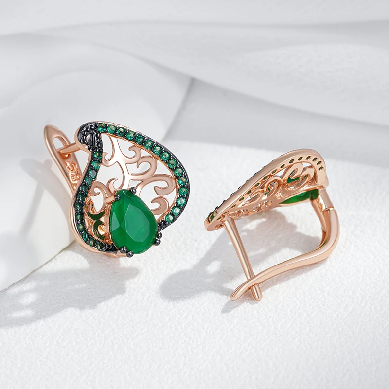 Kinel Hot Green Natural Zircon Crystal Flower Drop Earrings For Women 585 Rose Gold and Black Plating Vintage Daily Punk Jewelry
