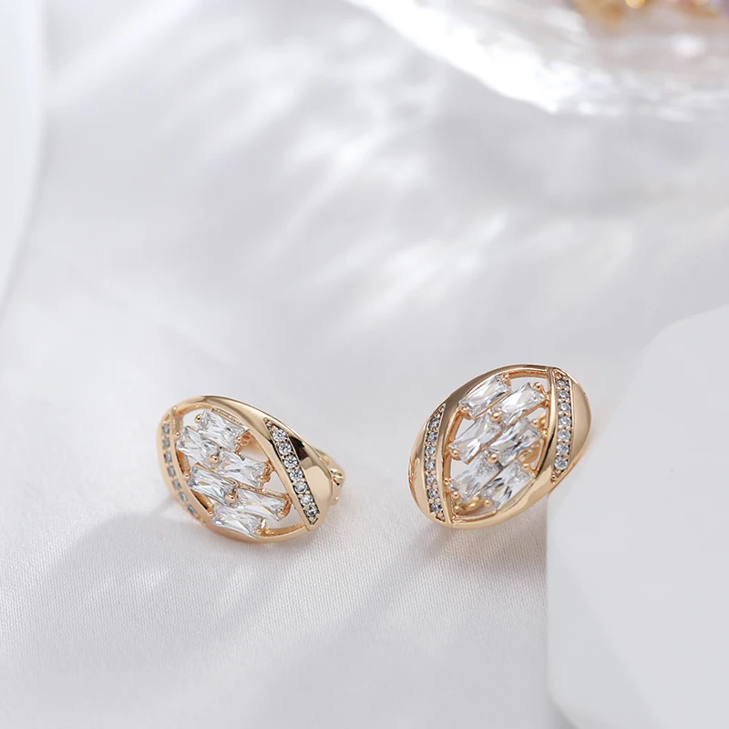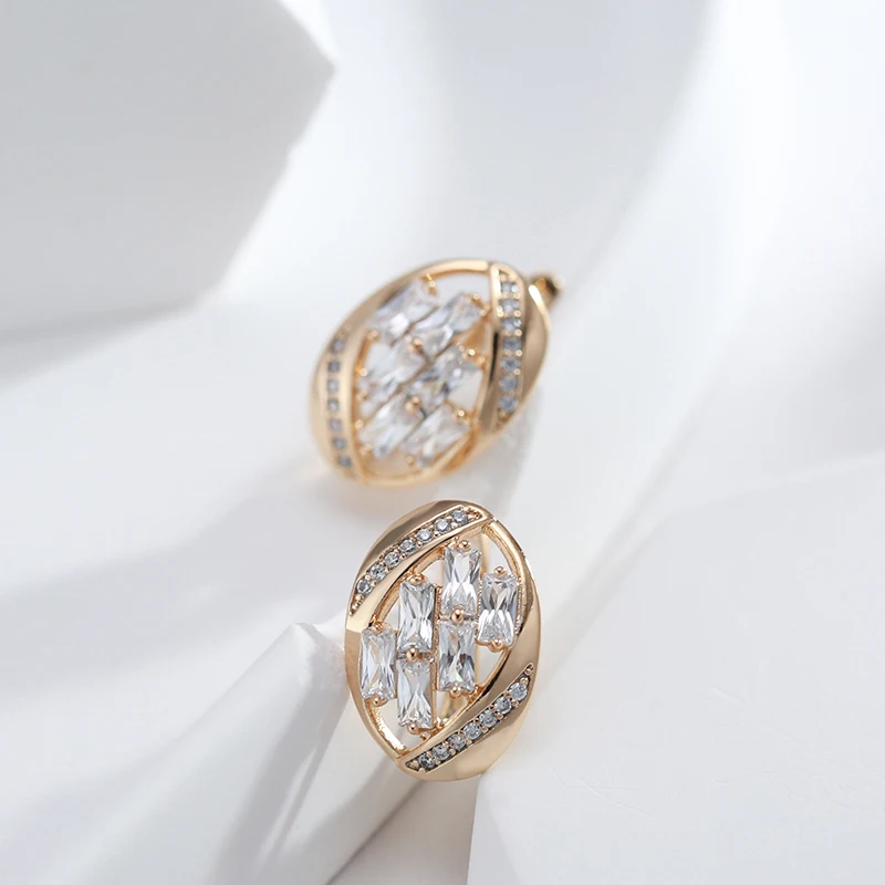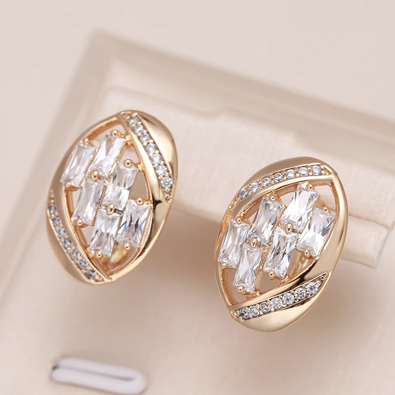 Kinel New 585 Rose Gold Color Earrings Daily Fashion Wedding Jewelry Luxury for Women Natural Zircon Earrings Pendant Jewelry