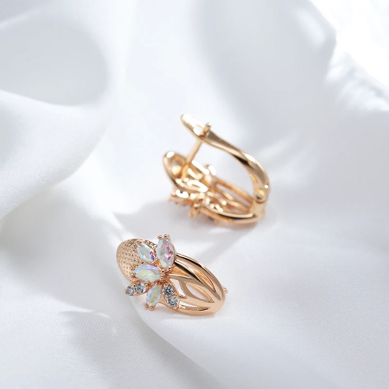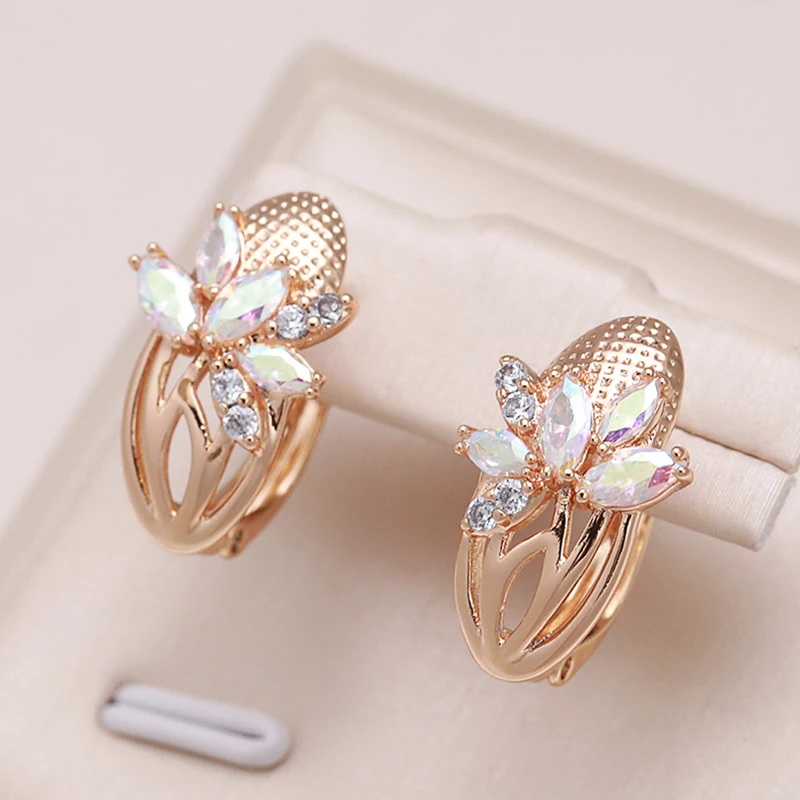 Kinel Fashion Colorful Natural Zircon Women Earrings 585 Gold Color Banquet Flower Earrings Statement Jewelry Crystal Gift 2022