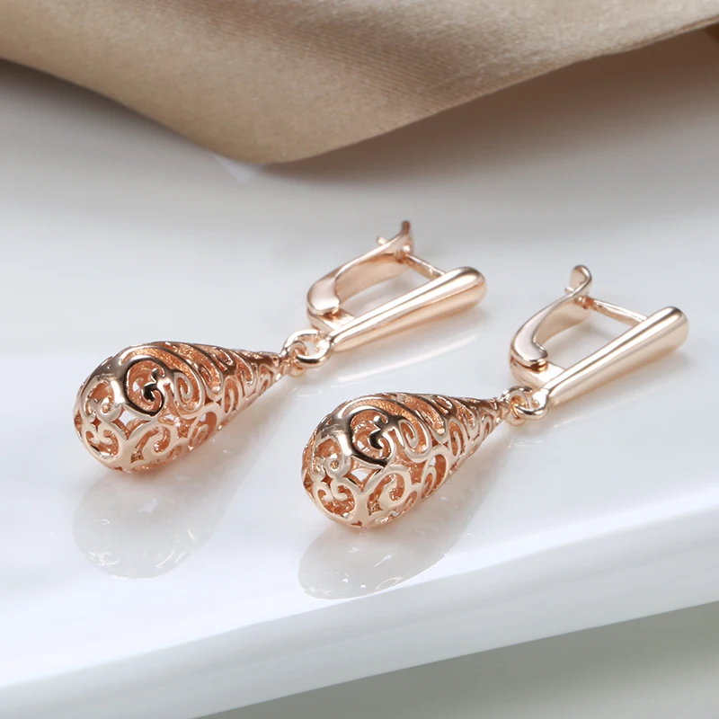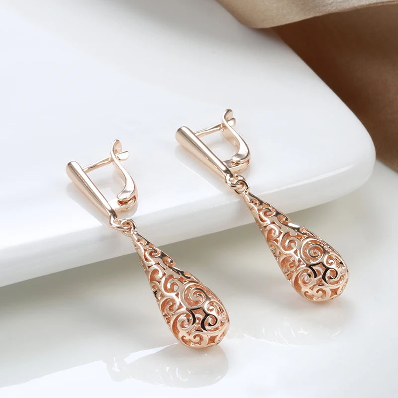 Kinel New Ethnic Bridal Long Dangle Earrings 585 Rose Gold Color Wedding Jewelry Unusual Hollow Flower Daily Earrings For Women