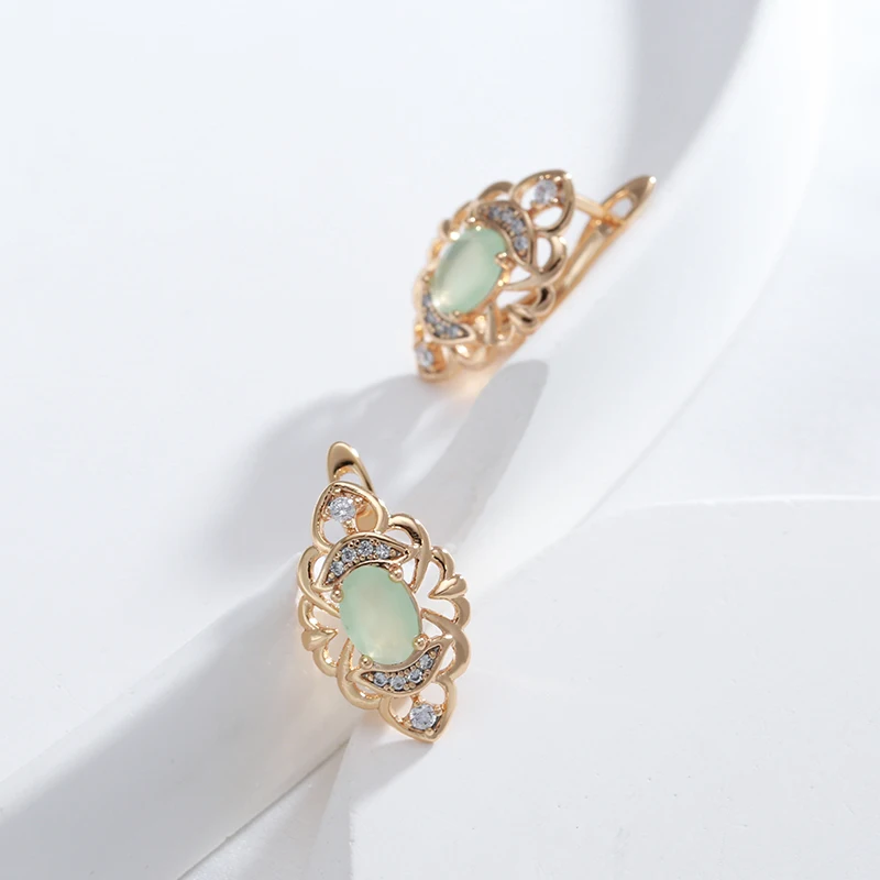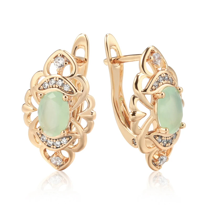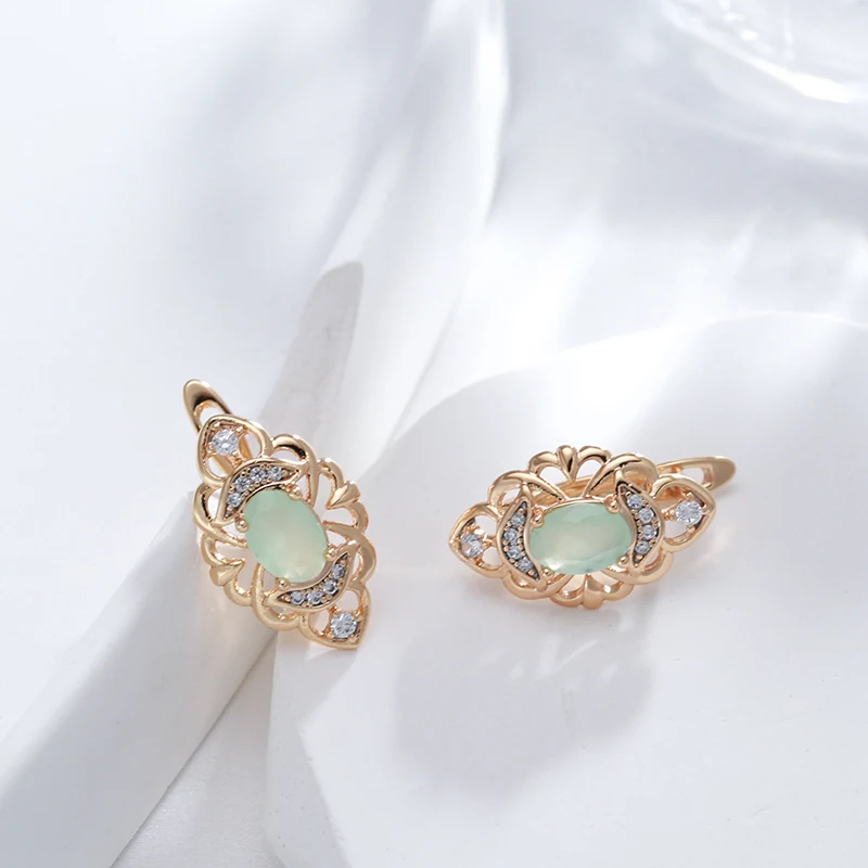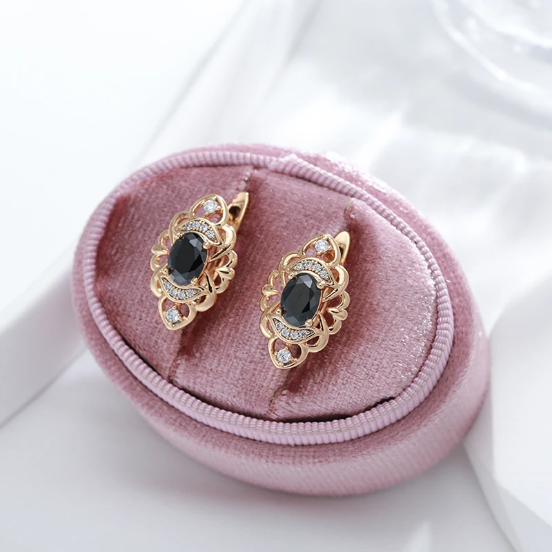 Kinel New Retro Glossy Hoop Earrings 585 Rose Gold Color Fashion Wedding Jewelry Unique Modern Natural Zircon Drop Earrings