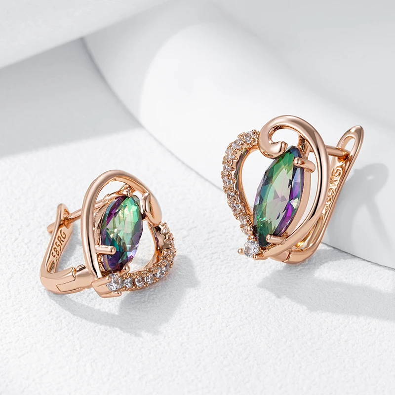 Kienl Hot Trend 585 Rose Gold Color Heart Drop Earring for Women Shiny Colorful Natural Zircon Accessories Daily Fine Jewelry