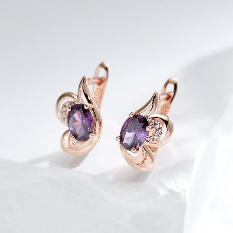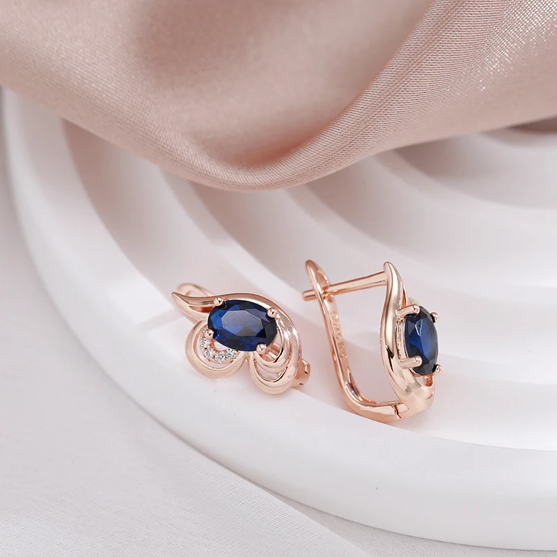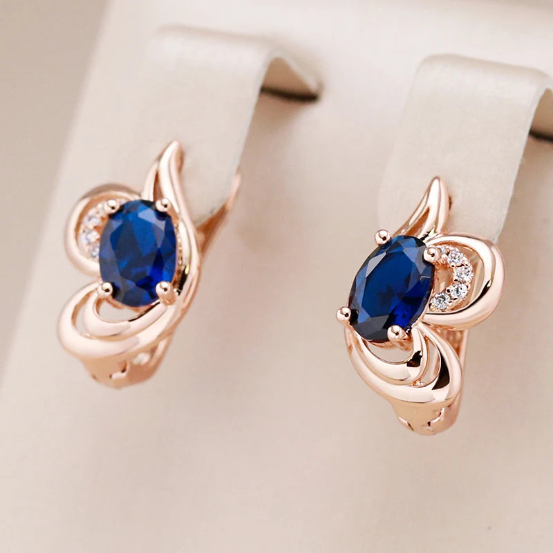 Kinel Hot Oval Blue Natural Zircon Butterfly Drop Earrings for Women Fashion 585 Rose Gold Color Trendy Party Daily Jewelry