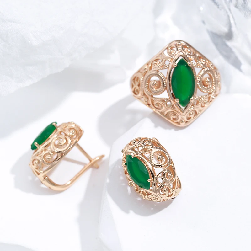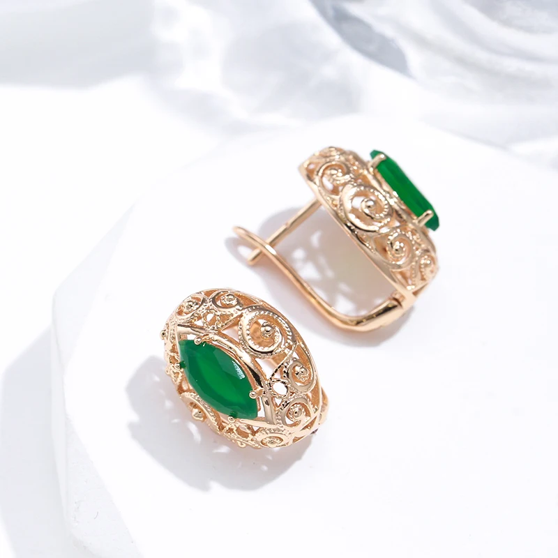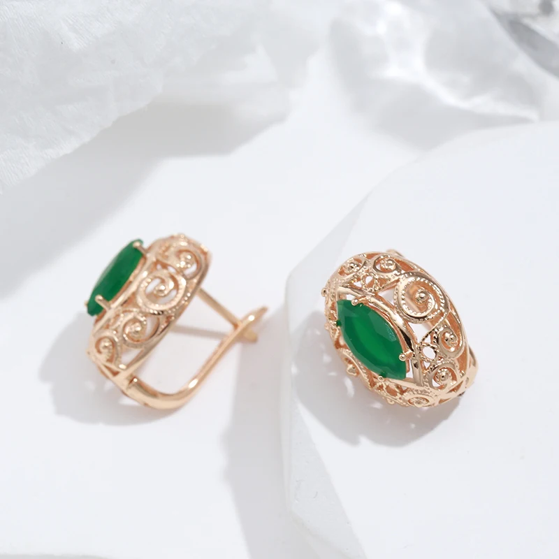 Kinel New Green Rhombus Natural Zircon Drop Earrings Trend Fashion Jewelry For Women 585 Rose Gold Color Gift Hollow Earrings