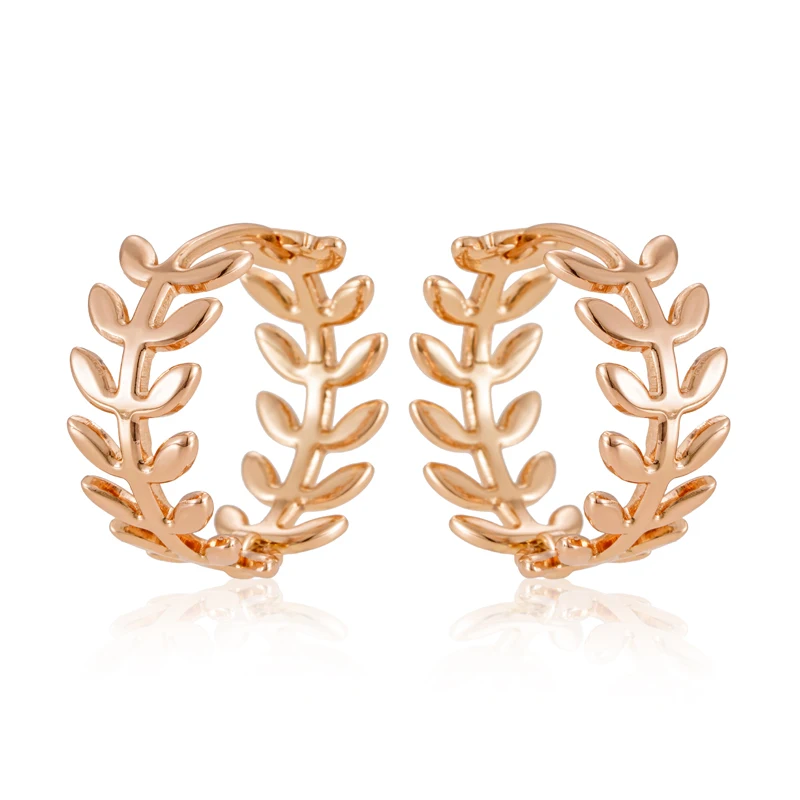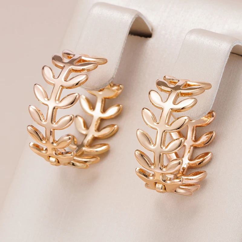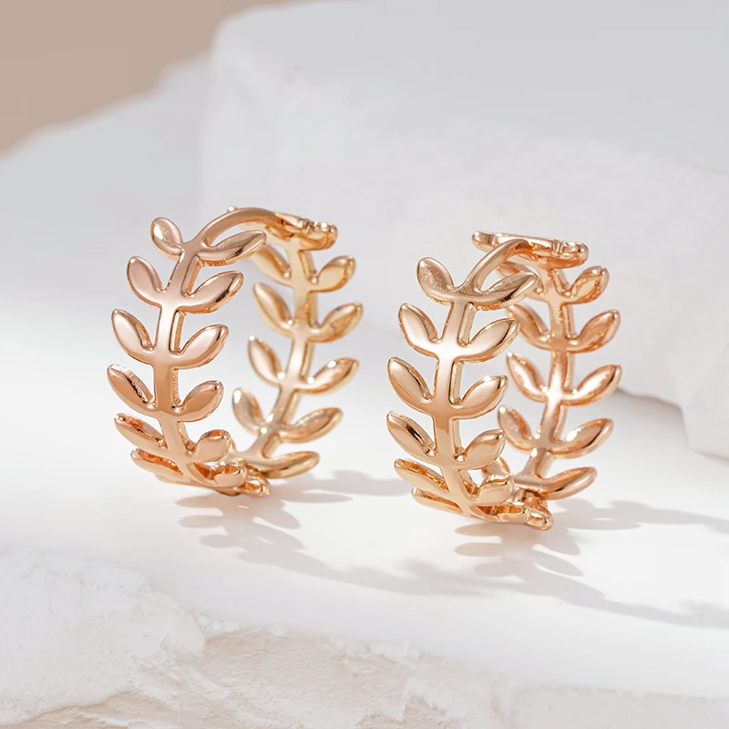 Kinel Hot Simple Glossy Hollow Leaf Hoop Earrings For Women Fashion 585 Rose Gold Color High Quality Daily Fine Vintage Jewelry