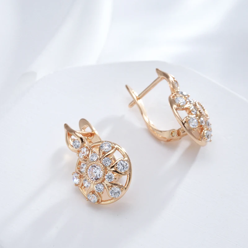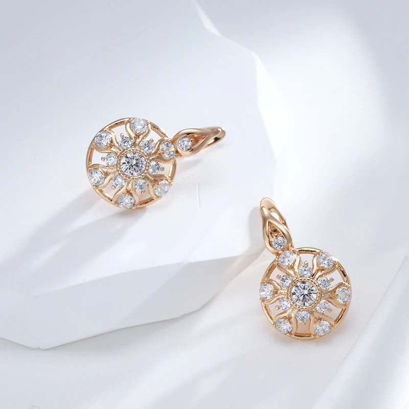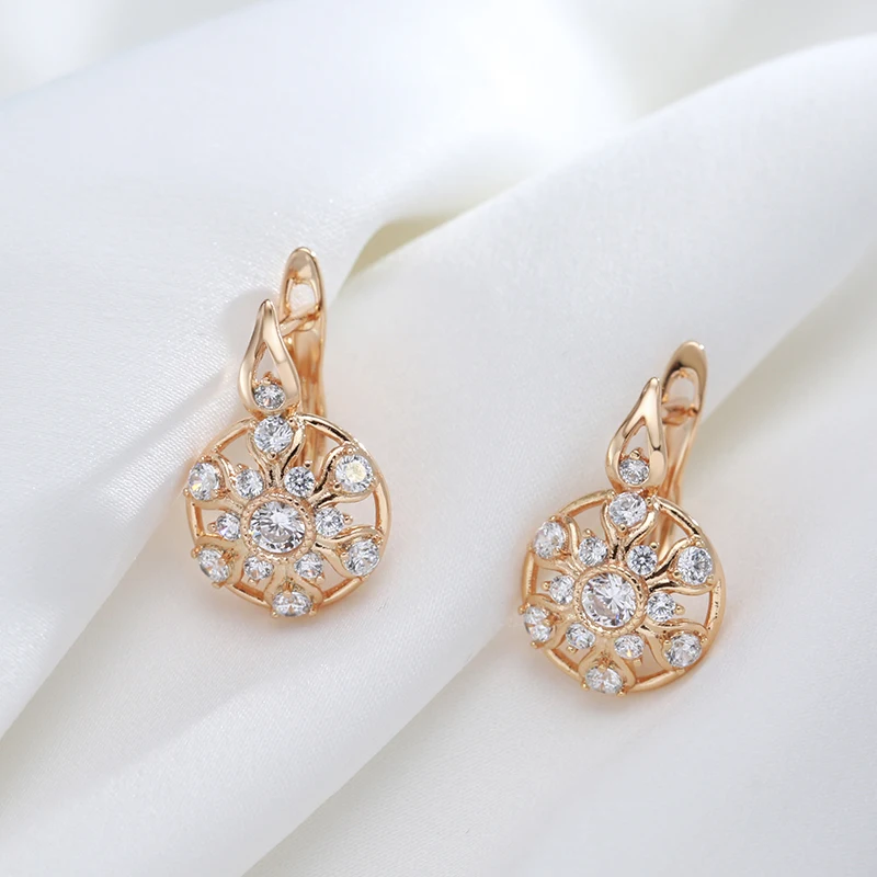Kinel New Trend Sunflower Natural Zircon Lovely Earrings Women Party Fashion Jewelry 585 Rose Gold Color Luxury Drop Earrings