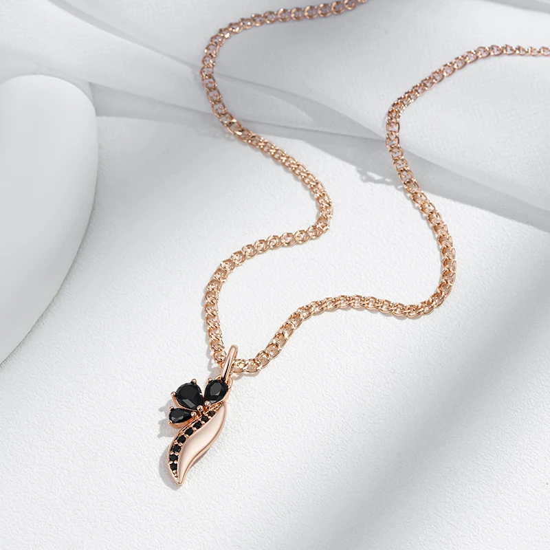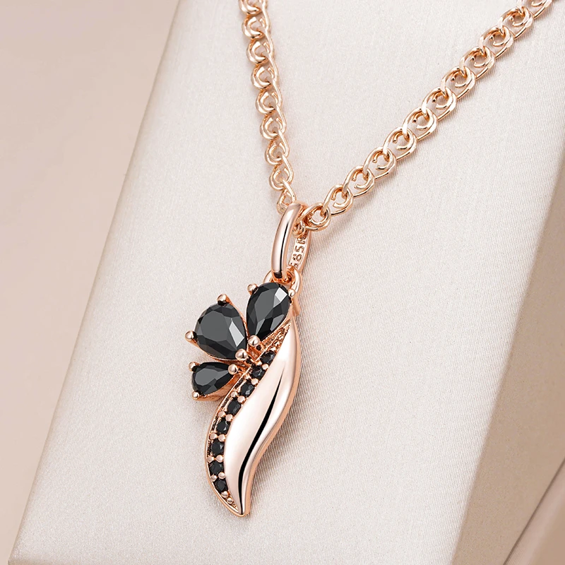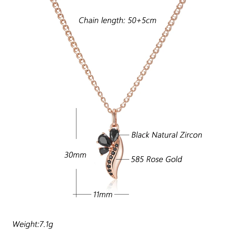 Kinel Hot Black Natural Zircon Pendant Necklace Women Fashion 585 Rose Gold Color Crystal Flower Pendant Fine Vintage Jewelry