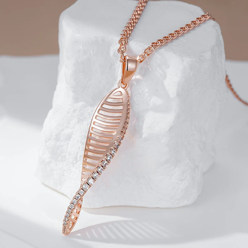Kienl Hot 585 Rose Gold Color Long Pendant Necklace for Women Crystal Flower Natural Zircon Accessories Daily Vintage Jewelry