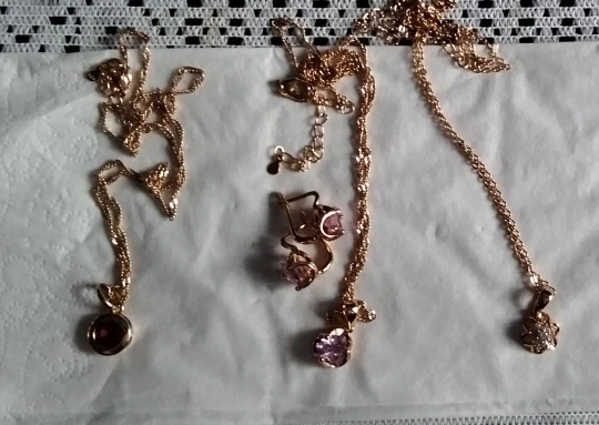 The jewelry is beautiful, looks like real gold, stones like rubies, zircons, everything sparkles.
