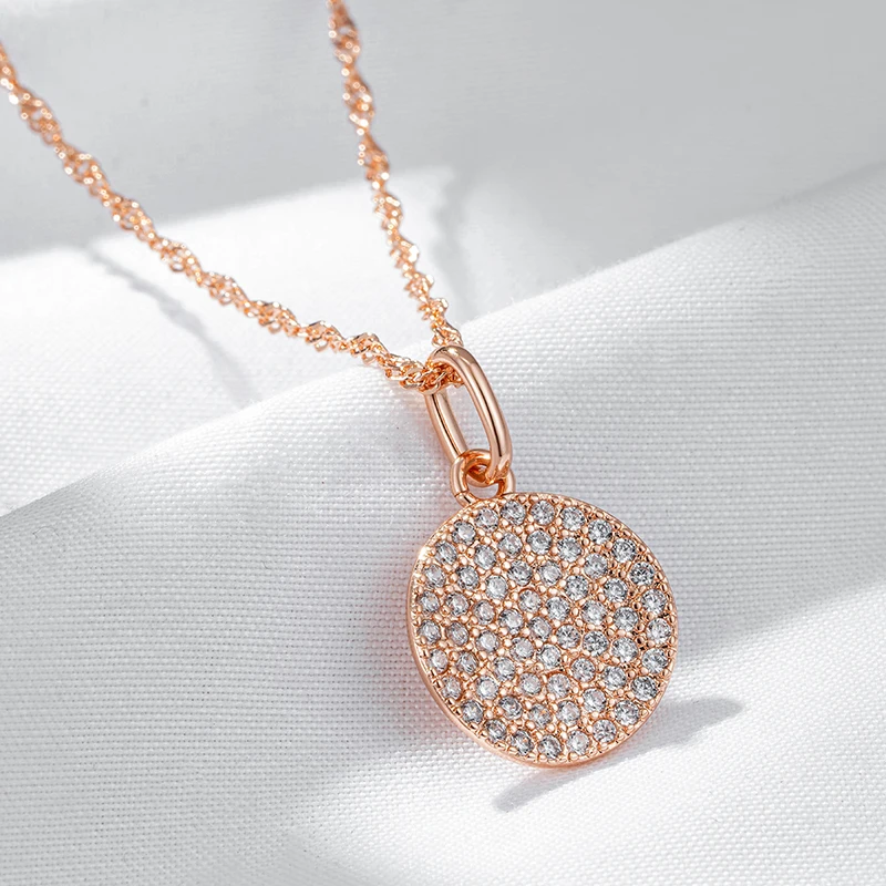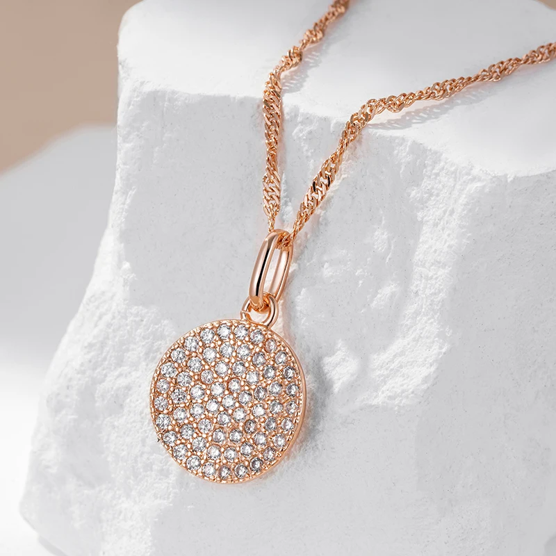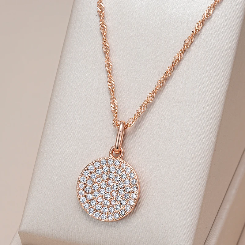 Kinel Hot Full Shiny Natural Zircon Round Pendant Necklace For Women Fashion 585 Rose Gold Color High Quality Daily Fine Jewelry