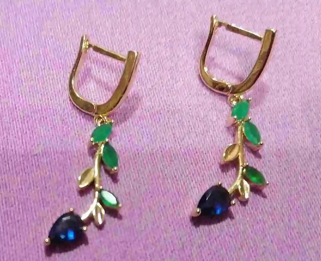 This piece is crafted from Copper & 585 Rose Gold and features round-cut natural zircon sapphire for a stunning finish.