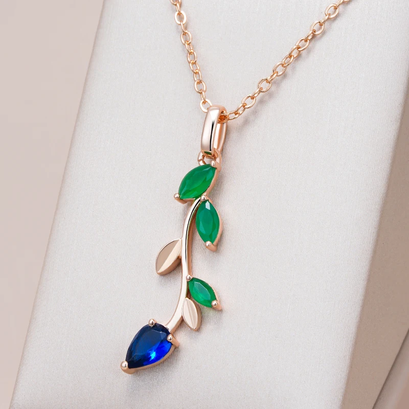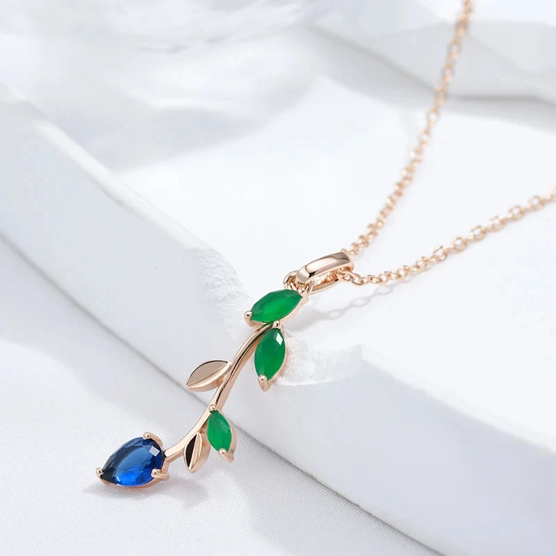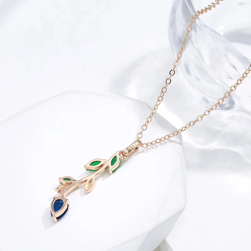 Kinel Hot 585 Rose Gold Color Long Leaf Pendant Necklace for Women Shiny Natural Zircon Accessories Vintage Daily Fine Jewelry