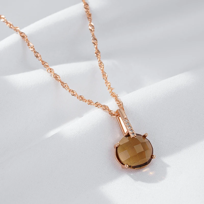 Kinel Fashion Round Light Brown Natural Zircon Pendant Necklace for Women Simple 585 Rose Gold Color High Quality Daily Jewelry
