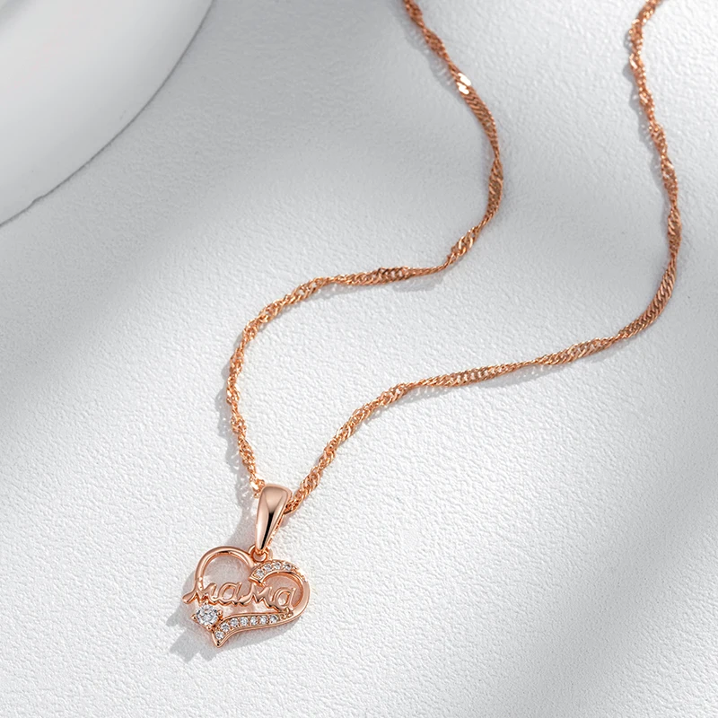 Kinel Hot 585 Rose Gold Color MaMa Heart Pendant Necklace for Women Natural Zircon Accessories High Quality Daily Fine Jewelry