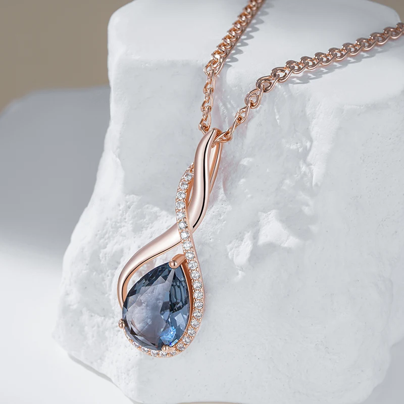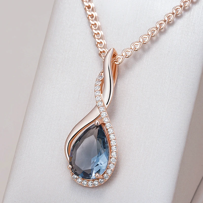 Kinel Shiny Grey Natural Zircon Pendant Necklace for Women Fashion 585 Rose Gold Color High Quality Daily Fine Vintage Jewelry