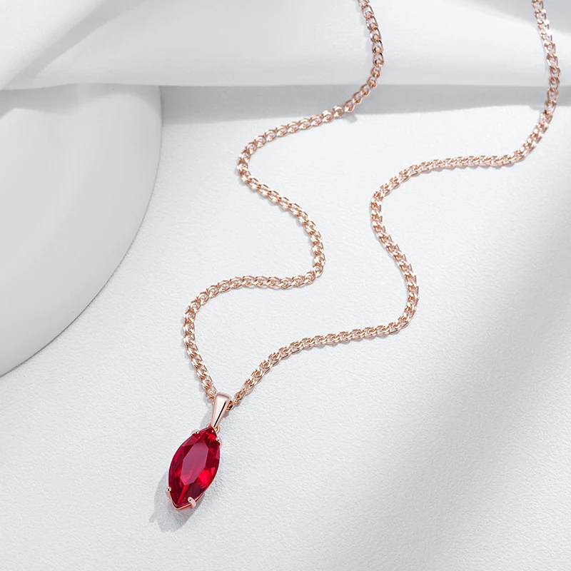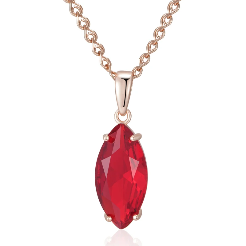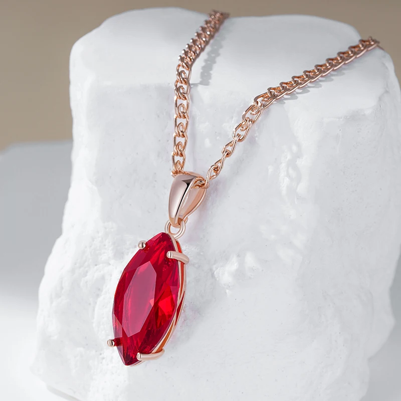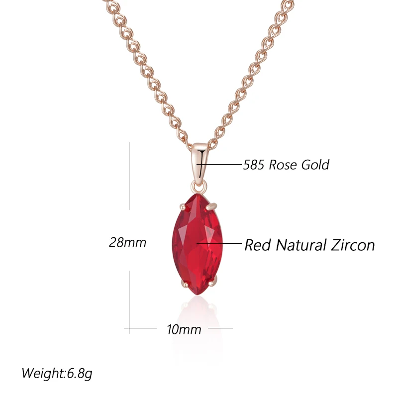 Kinel Hot Shiny Rhombus Red Natural Zircon Pendant Necklace for Women 585 Rose Gold Color High Quality Daily Fine Jewelry