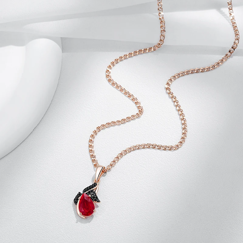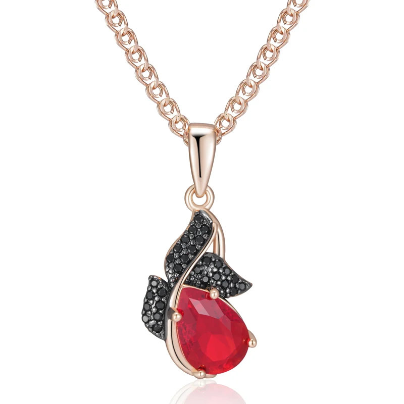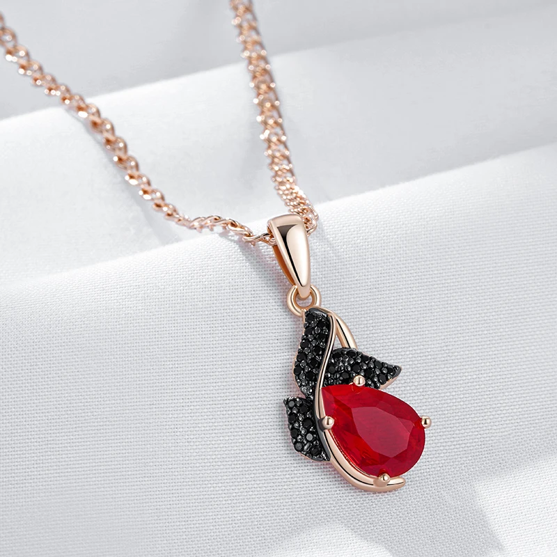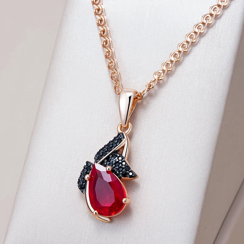 Kinel Hot Shiny Red Natural Zircon Pendant Necklace Women 585 Rose Gold and Black Plating High Quality Daily Fine Retro Jewelry