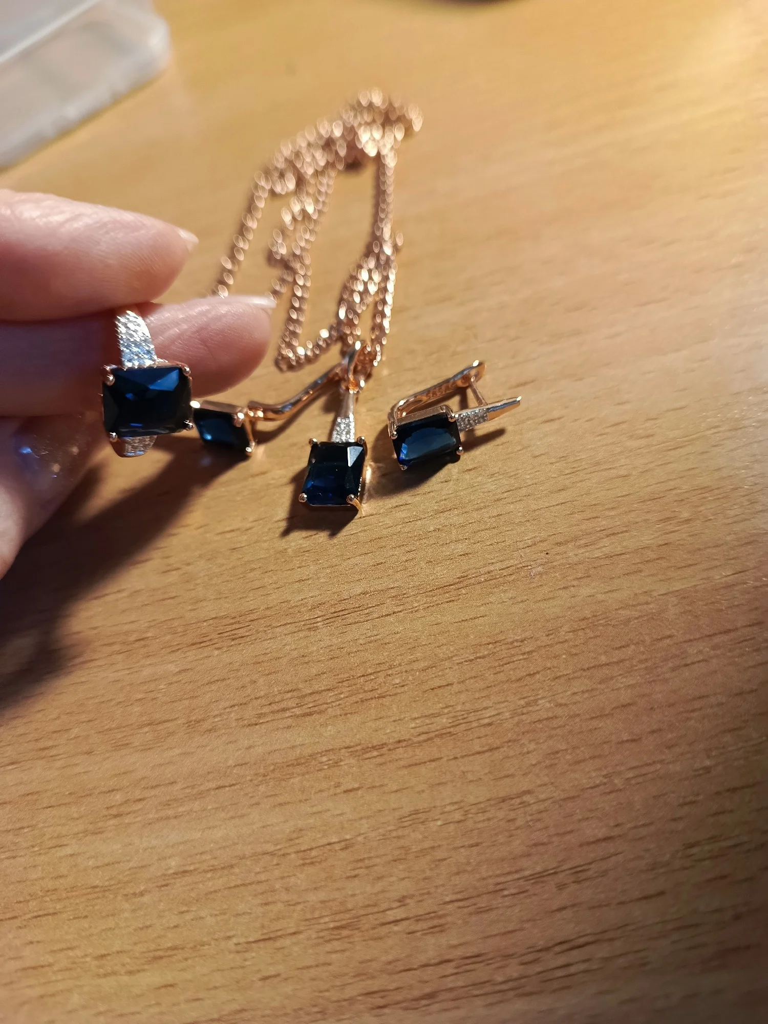 The set is gorgeous, I have allergic ears, but it's okay, no allergies, thank you very much to the seller!