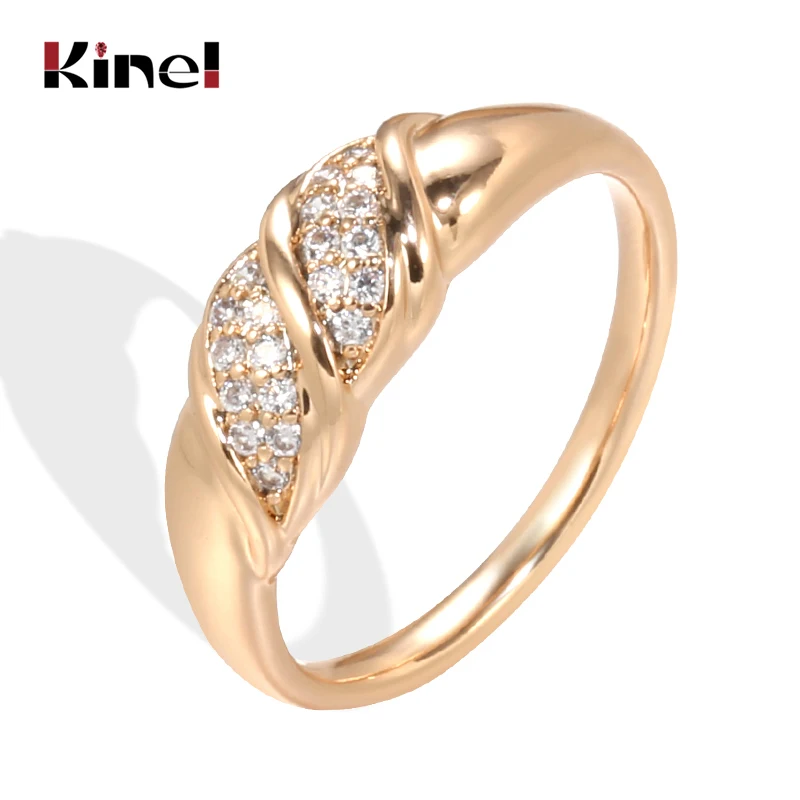 Kinel 2021 New 585 Rose Gold Ethnic Bride Wedding Rings Vintage Look Natural Zircon Ring Geometric Pattern Fine Jewelry