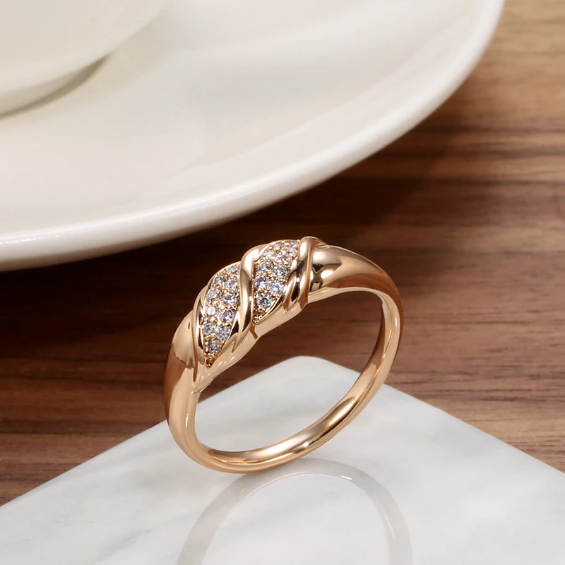 This piece is crafted from Copper & 585 Rose Gold and features round-cut natural zircon sapphire for a stunning finish.