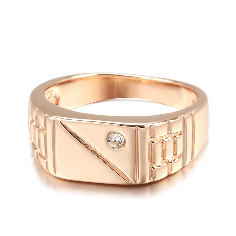 Kinel Hot Fashion Glossy Men Ring 585 Rose Gold Simple Square Natural Zircon Ring For Women High Quality Daily Fine Jewelry