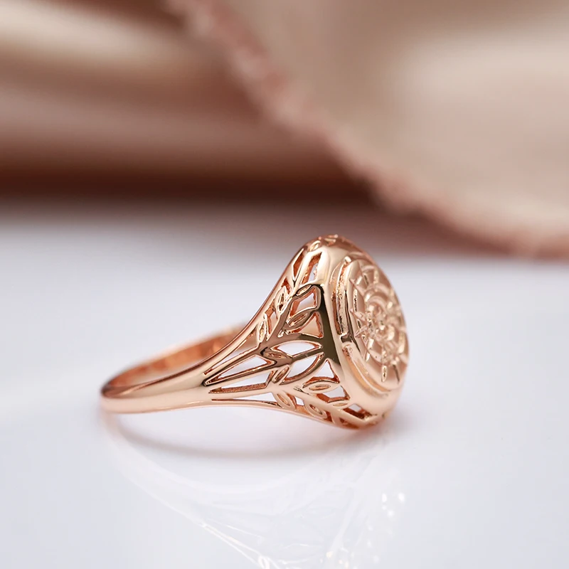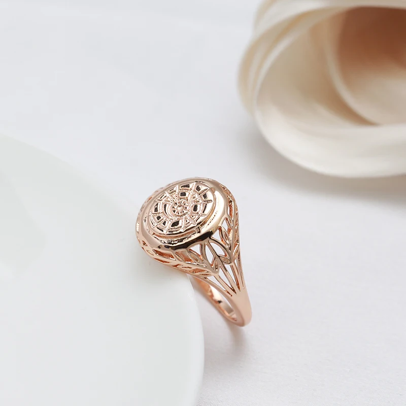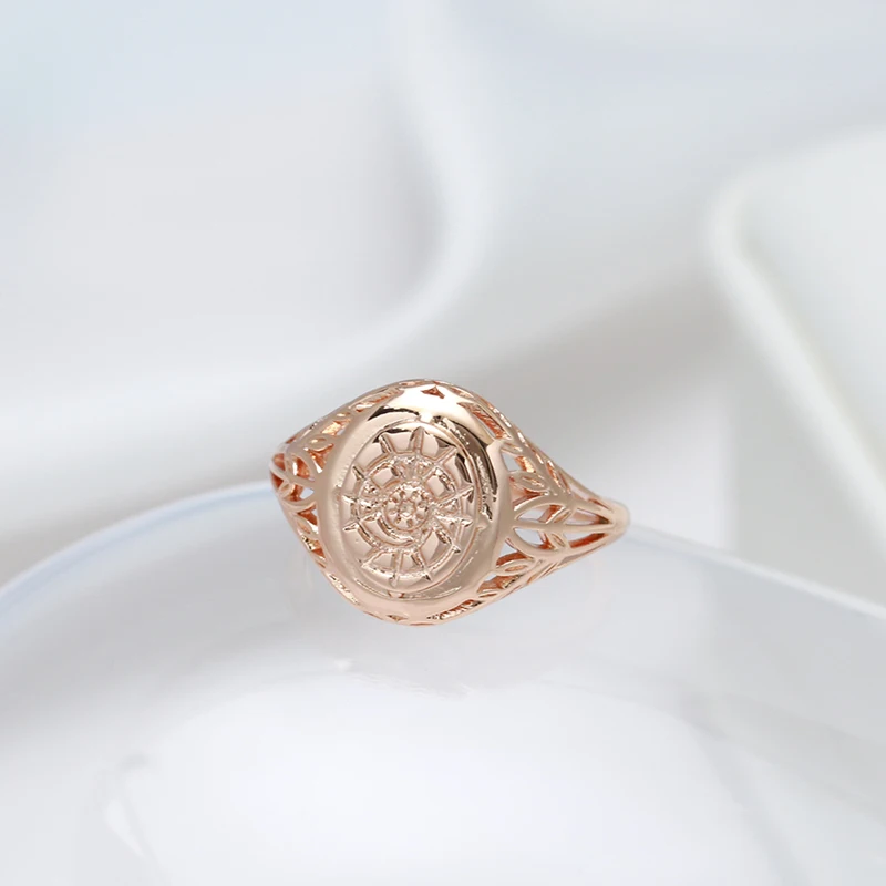 Kinel Hot Fashion Glossy Rings for Women 585 Rose Gold Unique Pattern Round Rings Ethnic Bride Wedding Jewelry 2022 New