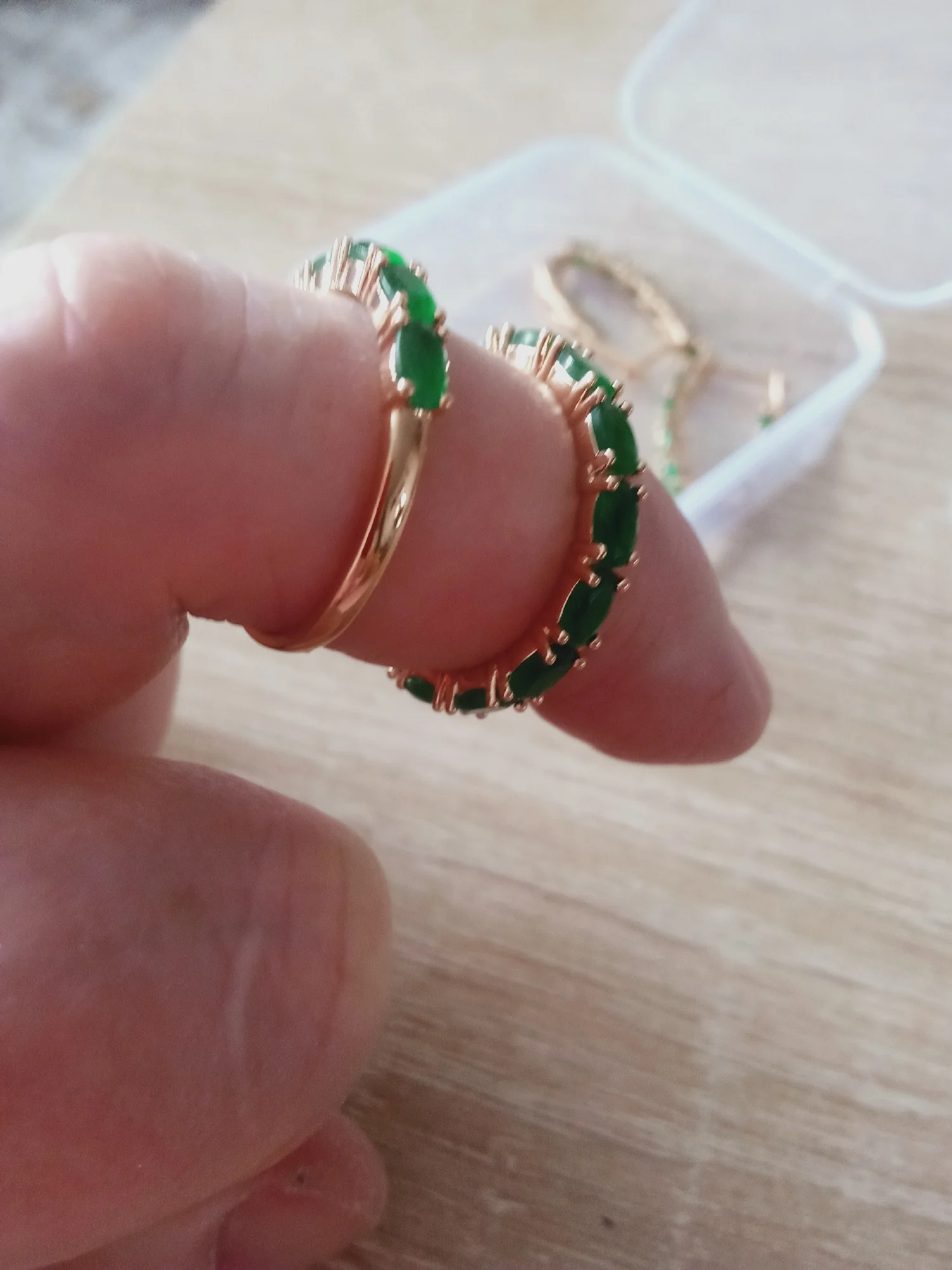 Kinel Full Opal Green Natural Zircon Women's Ring 585 Rose Gold Vintage Wedding Bride Jewelry Luxury Design Best Gift For Girl