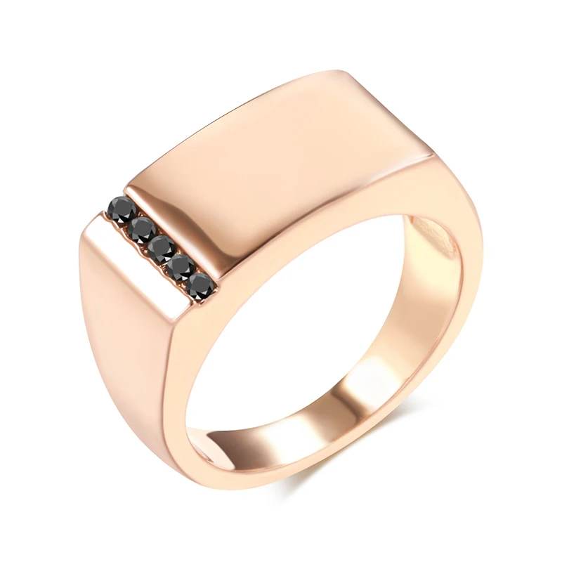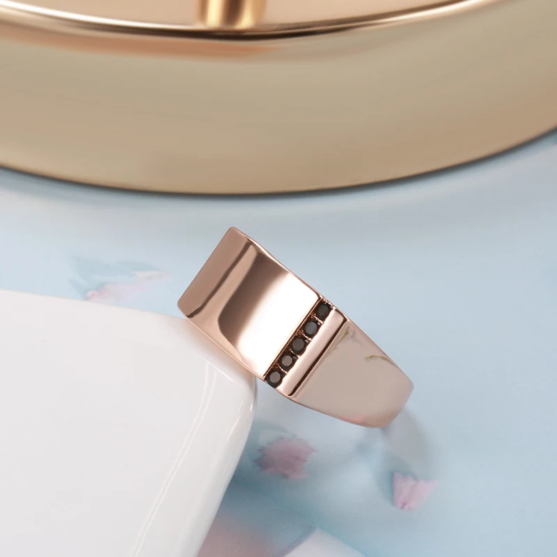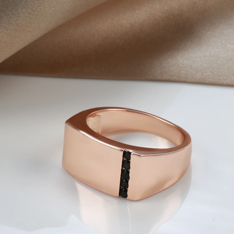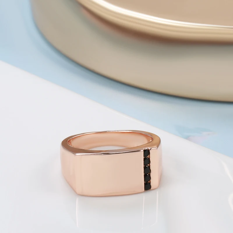 Kinel Hot Fashion Glossy Men Big Size Ring 585 Rose Gold Simple Square Black Natural Zircon Ring High Quality Daily Fine Jewelry