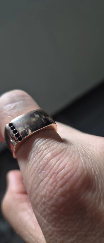 This piece is crafted from Copper & 585 Rose Gold and features round-cut natural zircon sapphire for a stunning finish.