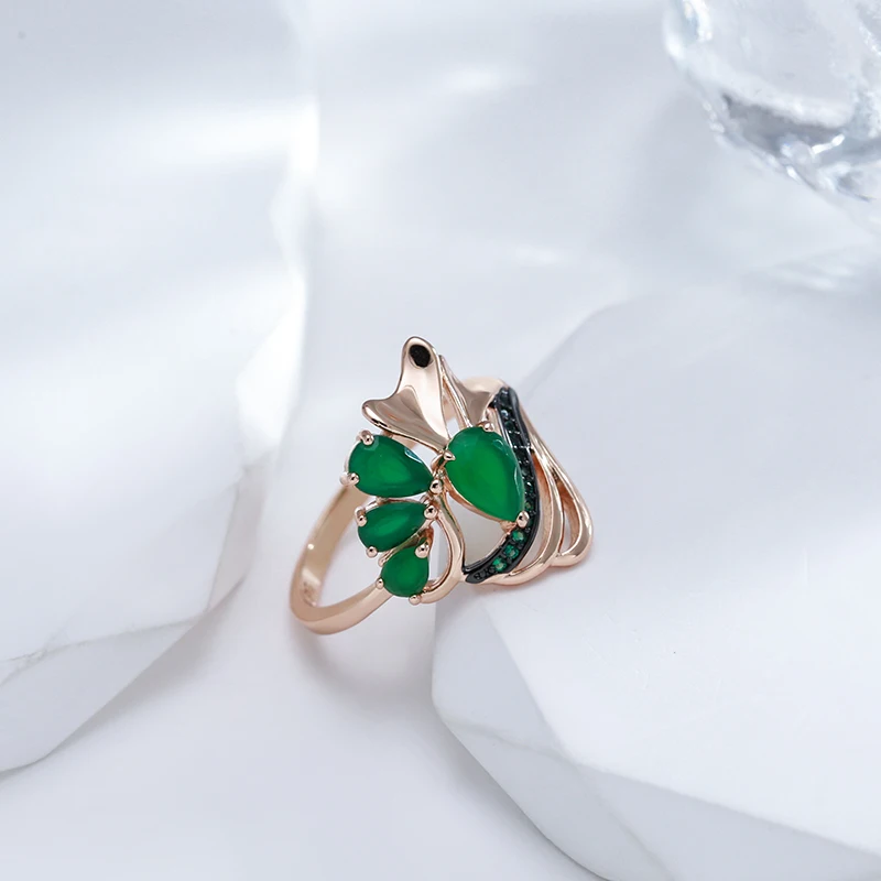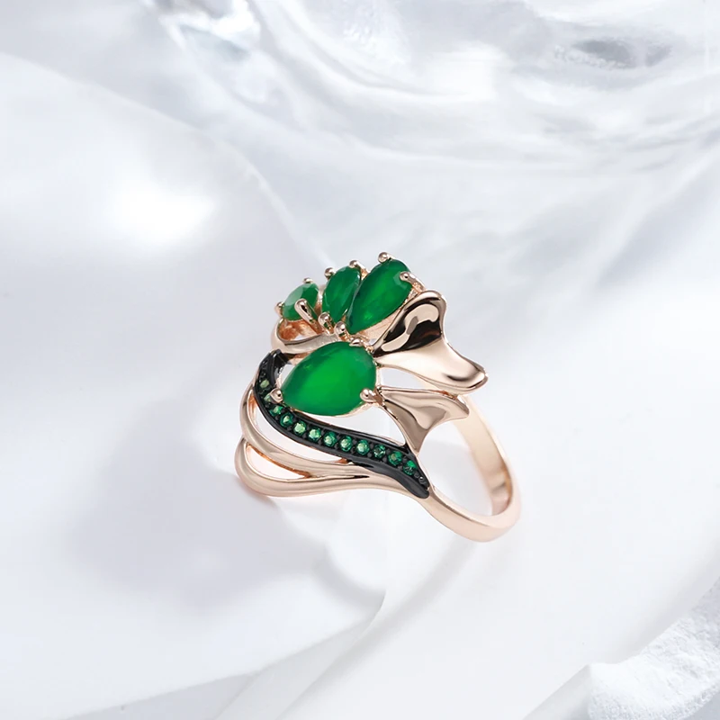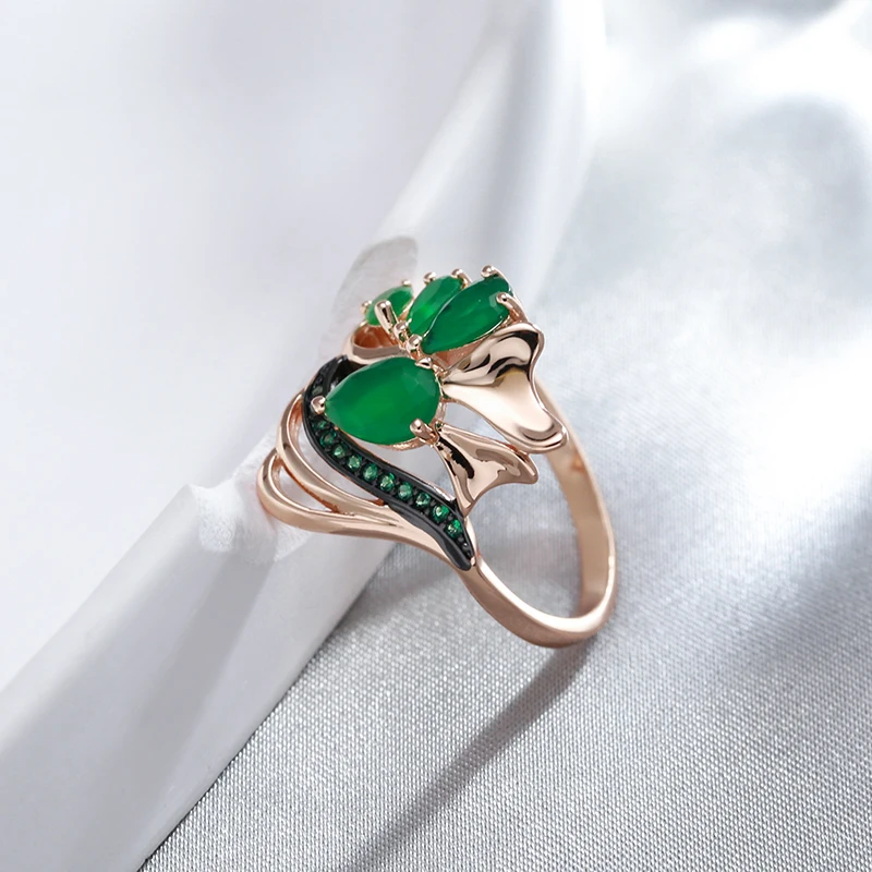 Kinel Luxury Dark Green Opal Zircon Rings For Women Vintage Black Plating 585 Rose Gold Color Wedding Rings Fine Daily Jewelry