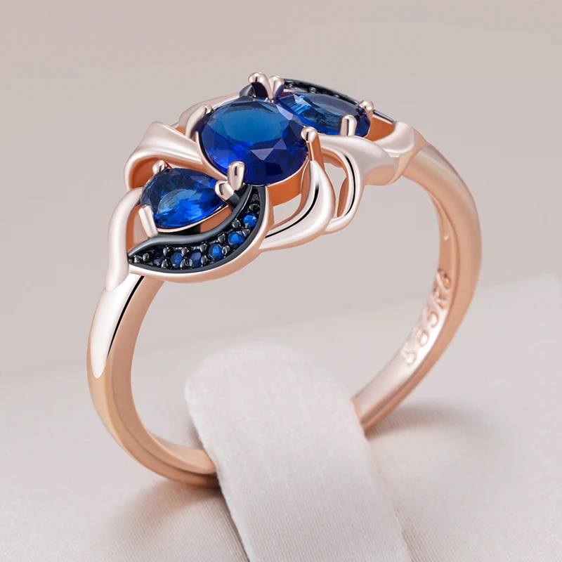 Kinel Hot Blue Natural Zircon Rings For Women 585 Rose Gold and Black Plating Vintage Crystal Flower Daily Fine Jewelry Gift