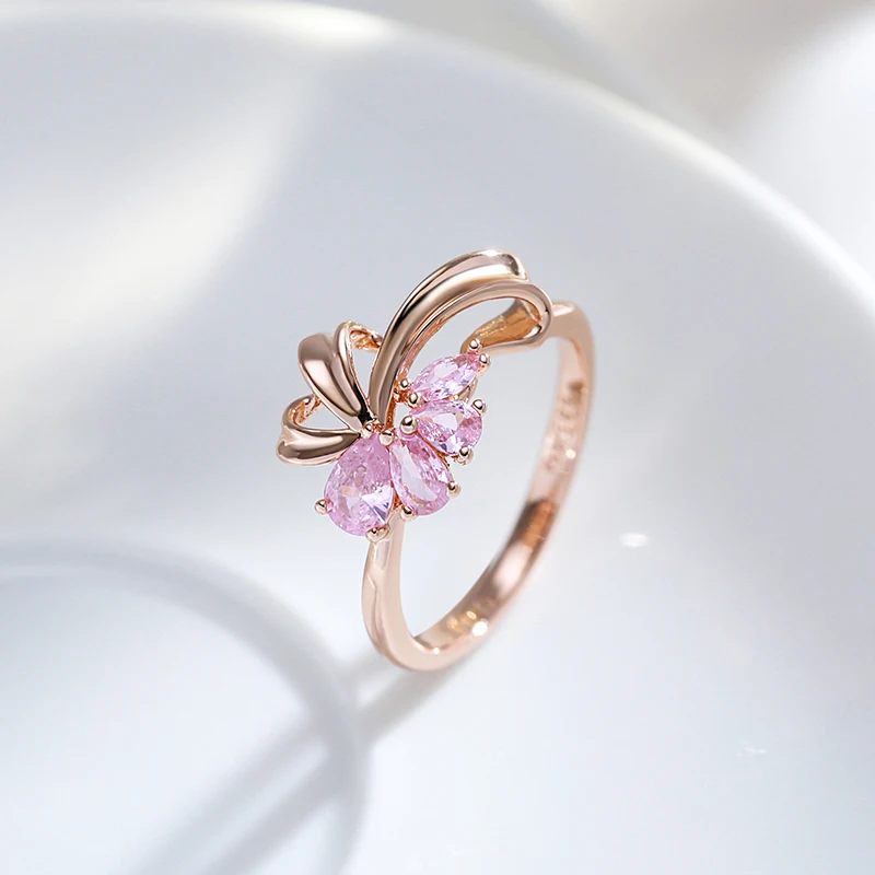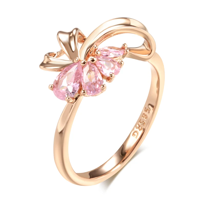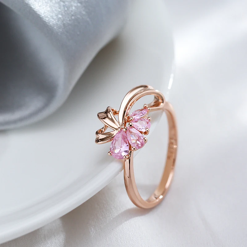Kinel Hot Pink Natural Zircon Ring For Women Trendy 585 Rose Gold Color Vintage Wedding Party Fine Daily Jewelry