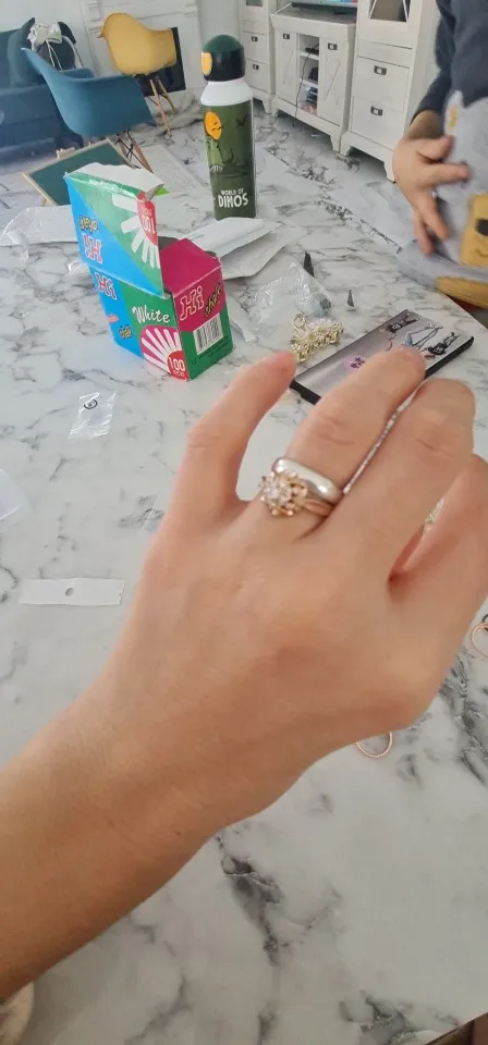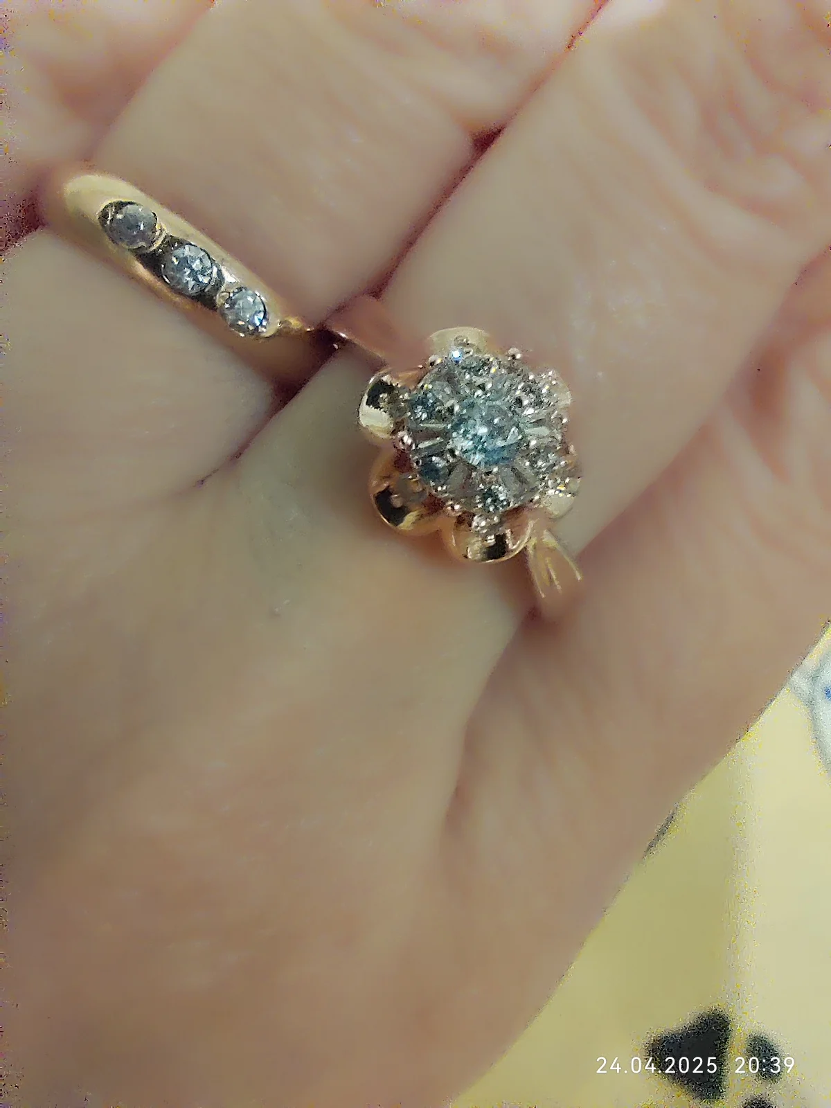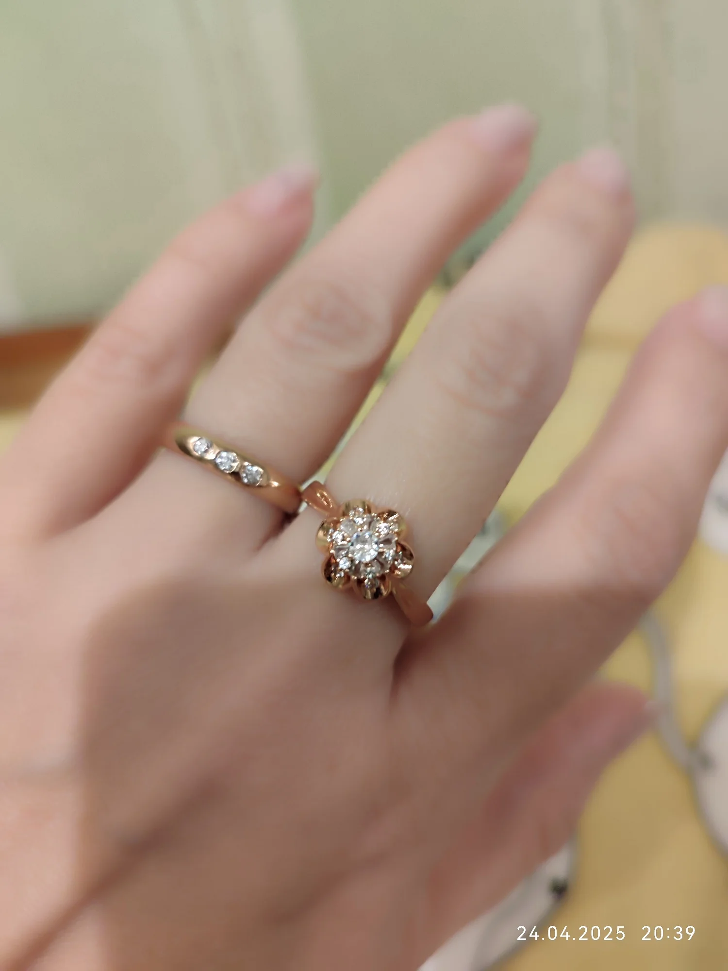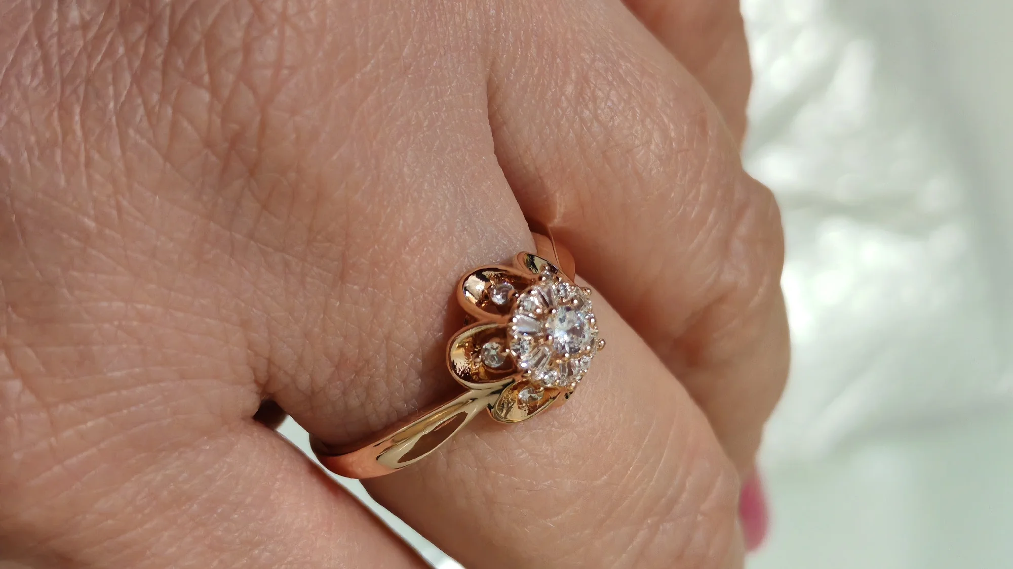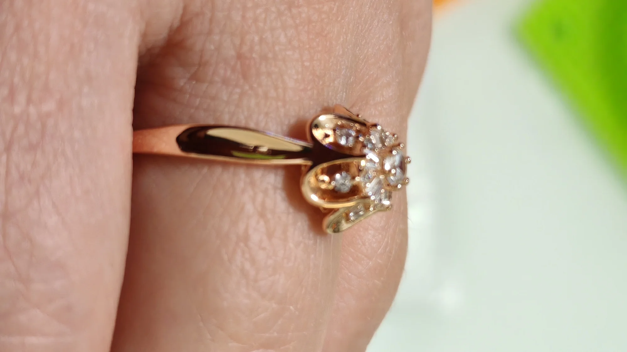 I rarely write reviews, but I couldn't pass this one up! The ring is simply amazing, high quality, perfectly polished, nothing gets scratched, the stones are set perfectly. The color is like real rose gold. In the photo for comparison, the ring is made of Soviet gold, you can't tell the difference! even worth 585 "sample". I don't know how long this "gold" will last, but for now, I'm enjoying the purchase!