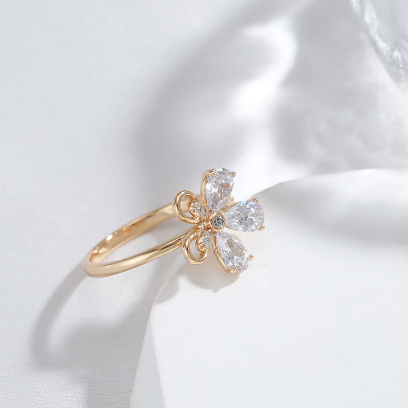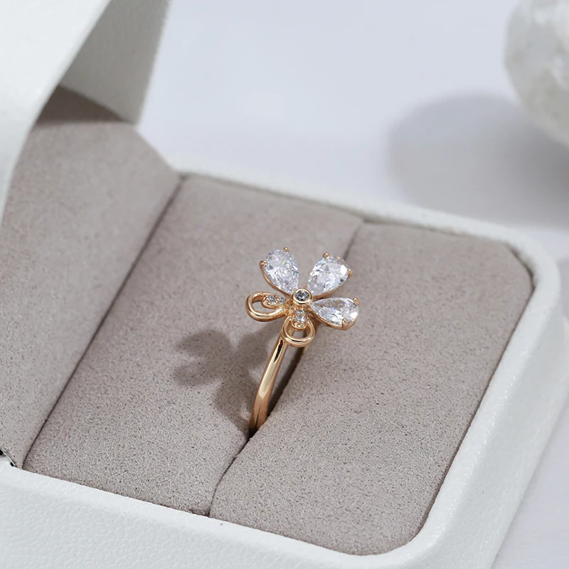 Kinel Fashion Crystal Flower Luxury 585 Rose Gold Color Natural Zircon Retro Women's Ring Temperament Party Wedding Jewelry