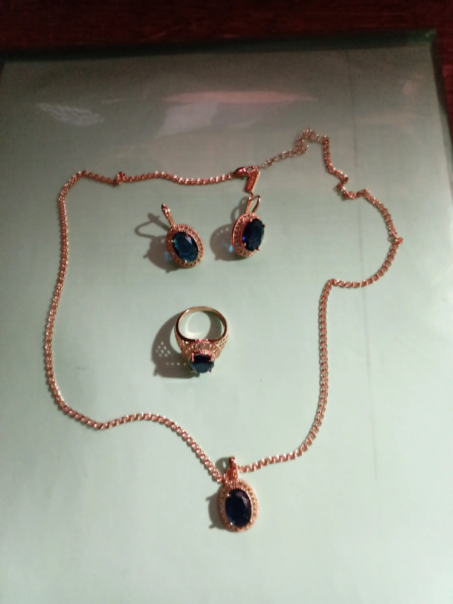 A beautiful set of good quality, looks like real gold, 585 gold plating, beautiful zircon, the ring came with earrings and a pendant with a 55cm chain, well packed in a plastic box, everything matches the description, thank you for the beauty.