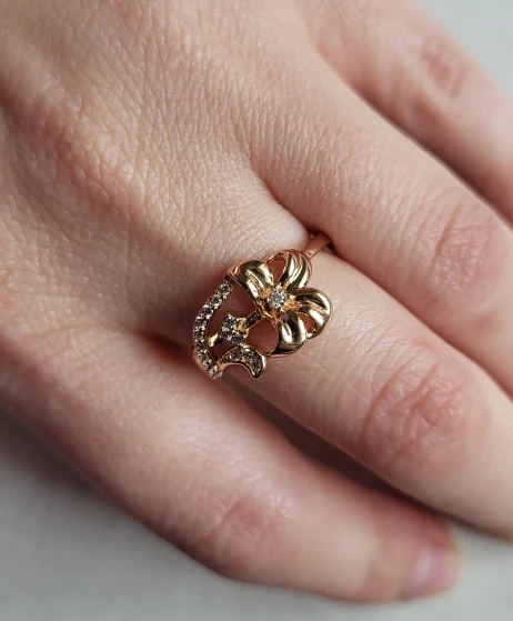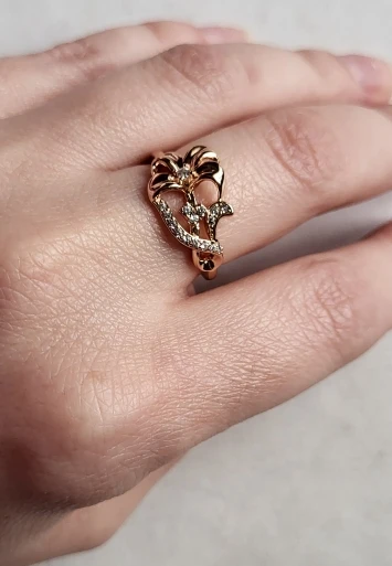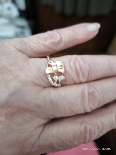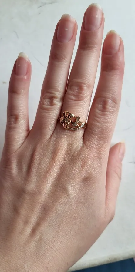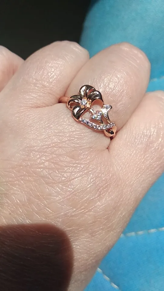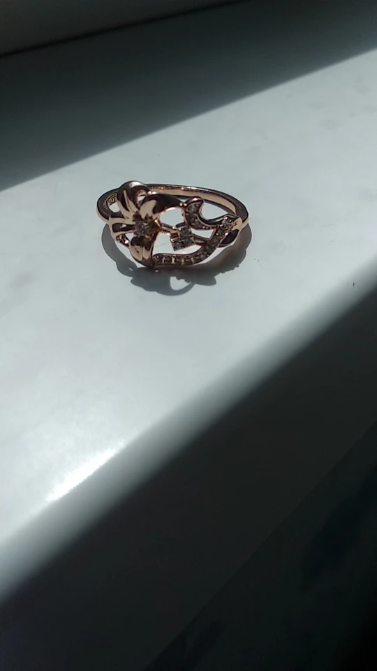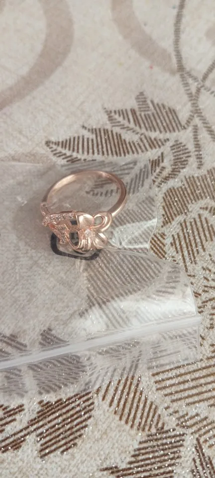 The ring is beautiful, all the stones are in place, it shines perfectly. The color is rose gold, no different from the real thing, fast delivery, recommend.